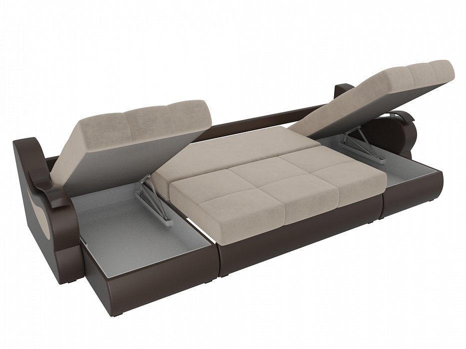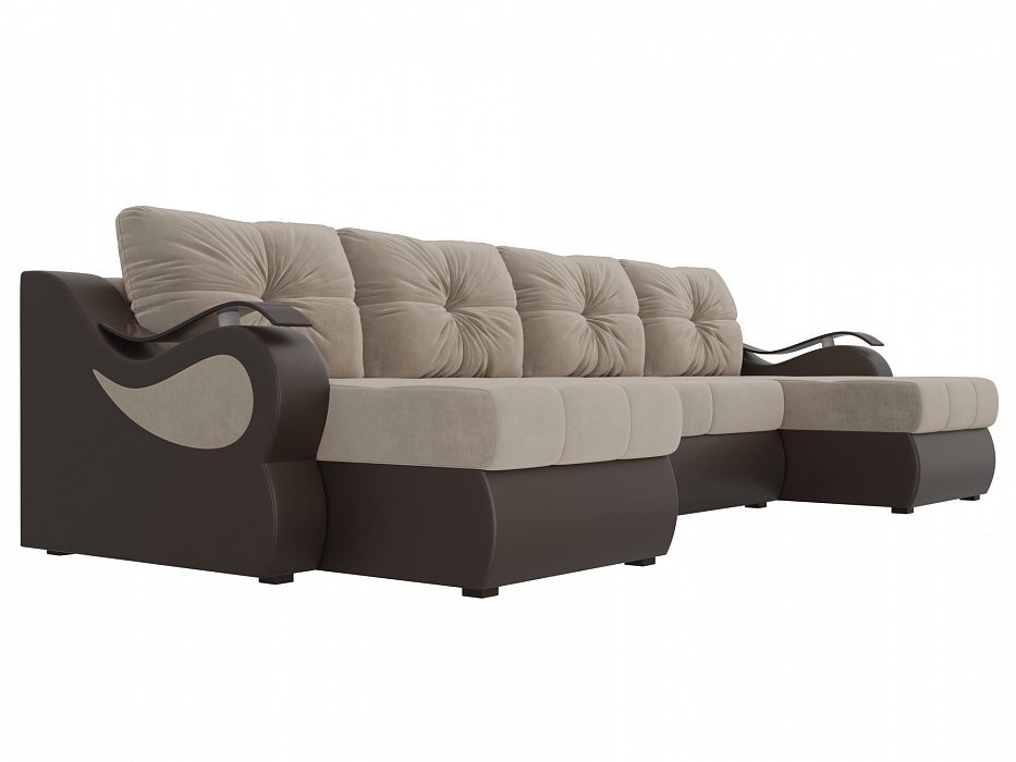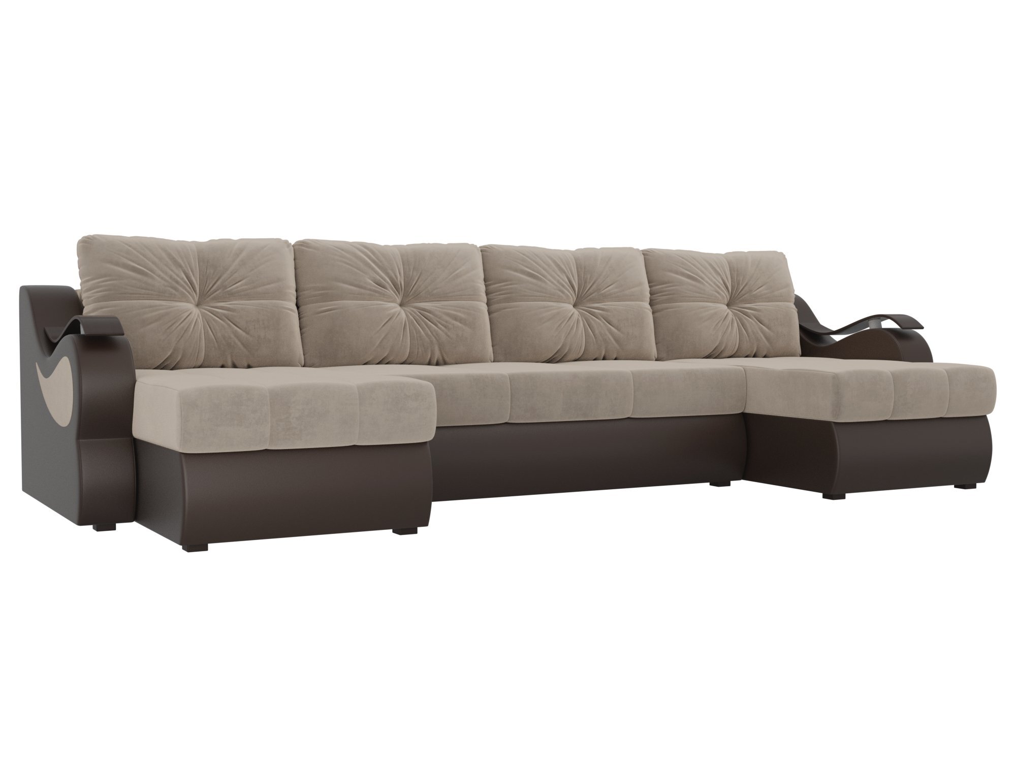 П-образный диван Меркурий Велюр\Экокожа бежевый\коричневый