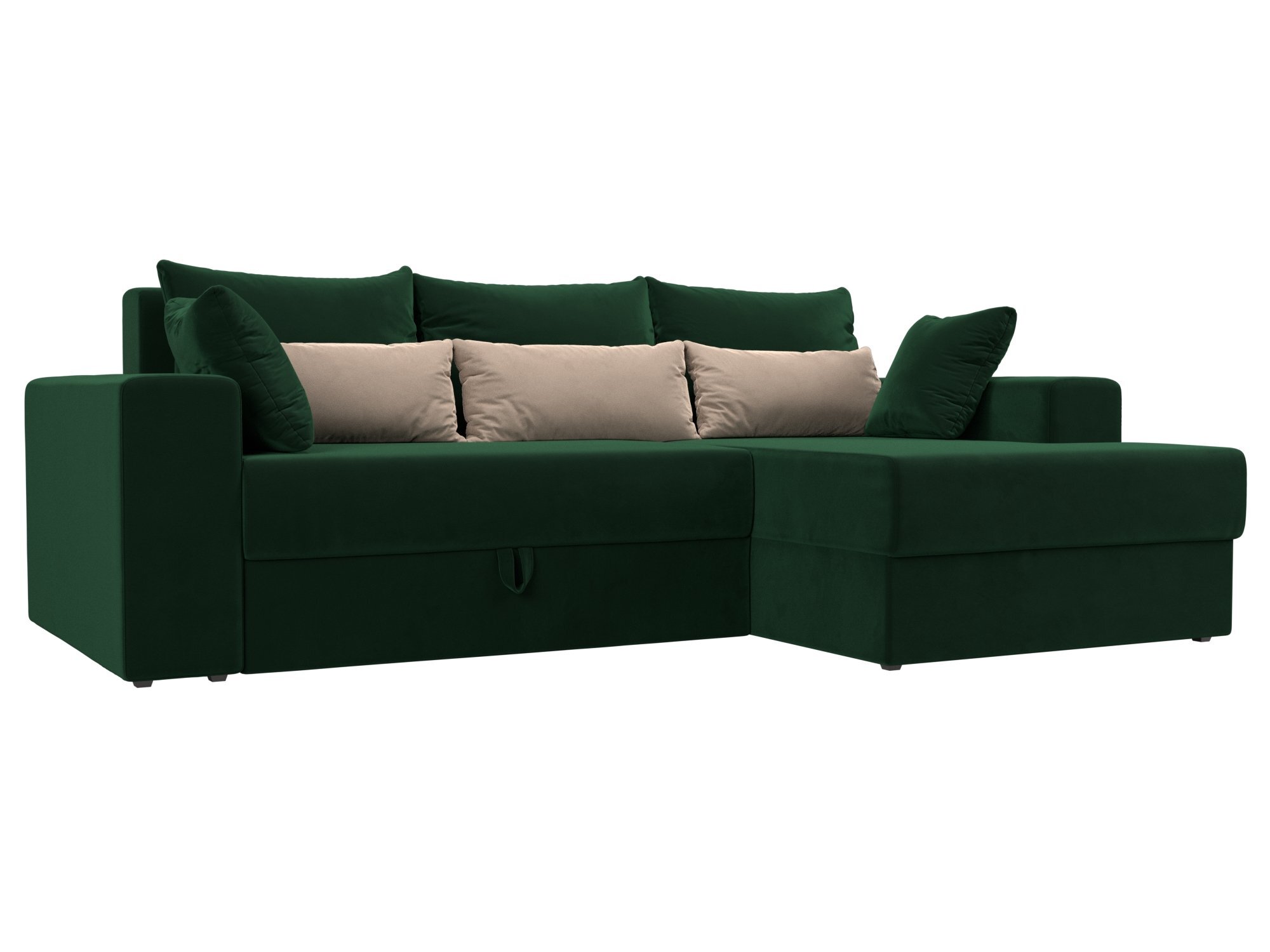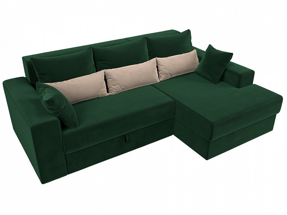 Угловой диван Мэдисон Велюр Зеленый\Зеленый\Бежевый