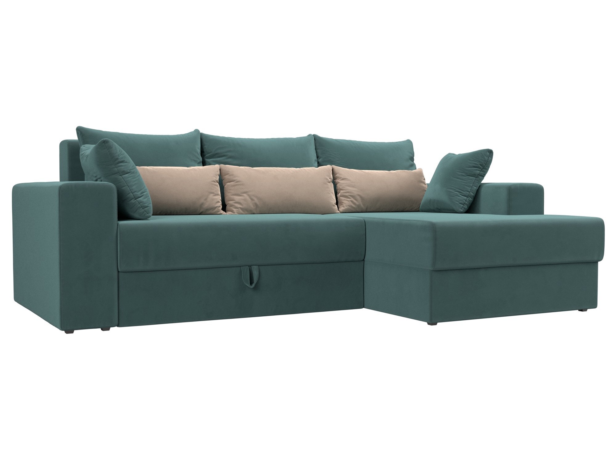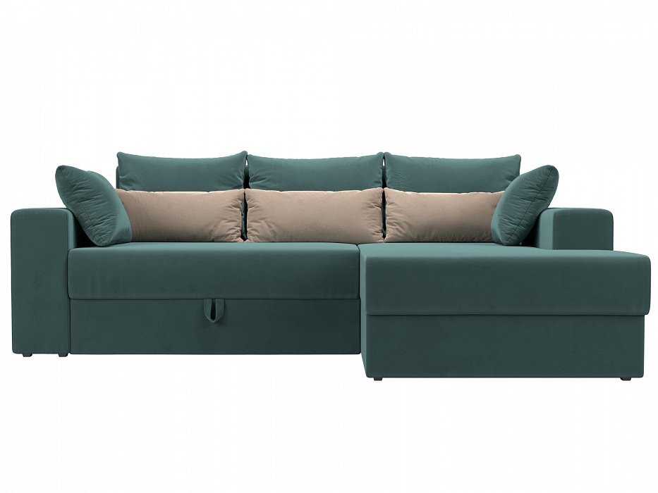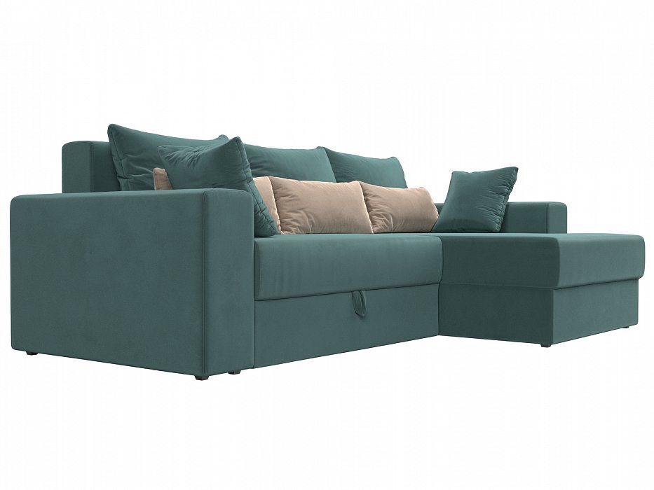 Угловой диван Мэдисон Велюр Бирюзовый\Бирюзовый\Бежевый
