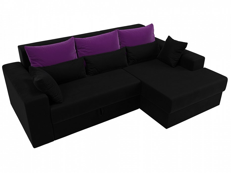 Угловой диван Мэдисон Микровельвет Черный\Фиолетовый\Черный