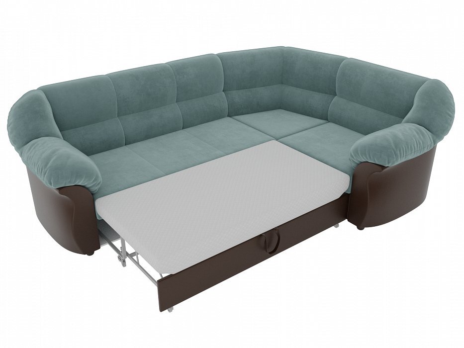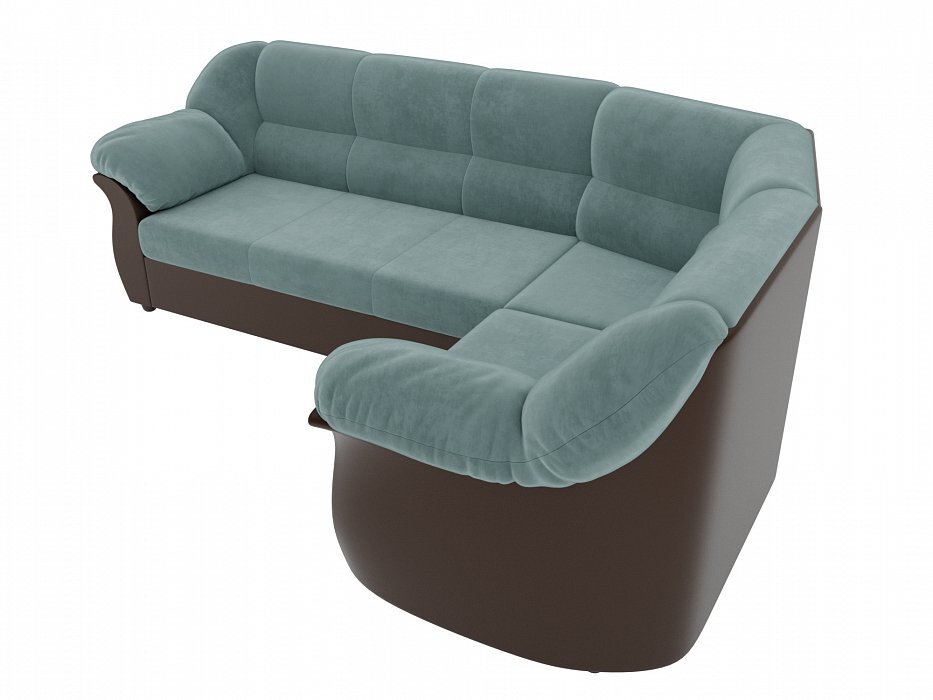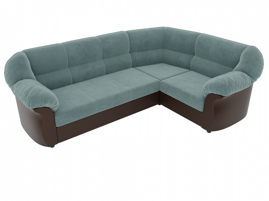 Диван угловой Карнелла Велюр\Экокожа Бирюзовый\Коричневый