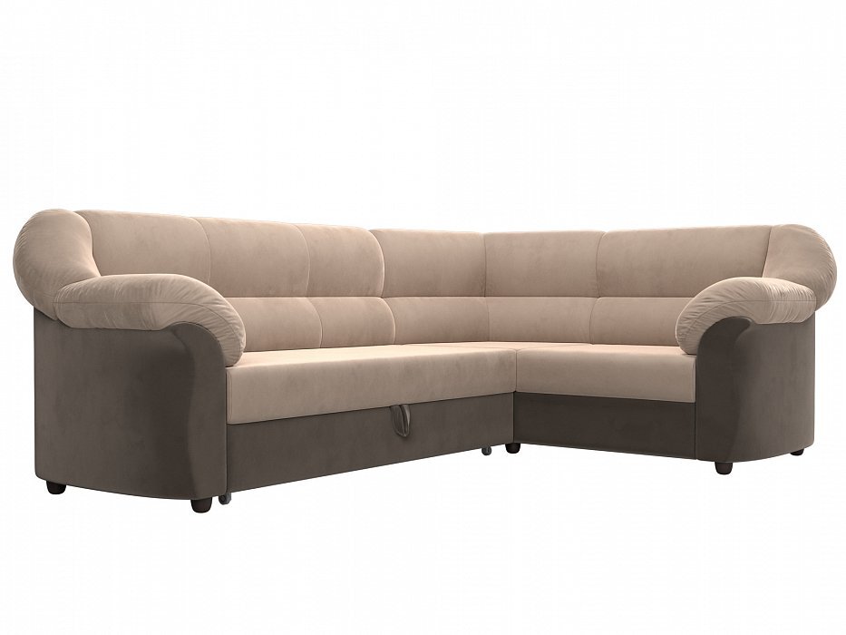 Диван угловой Карнелла Велюр бежевый\коричневый