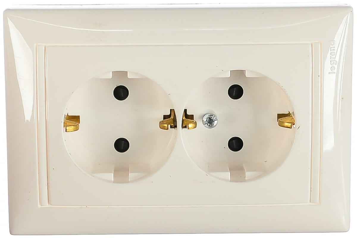 Двухместная розетка с заземлением и защитными шторками Legrand, Valena белая литая 774427 694282
