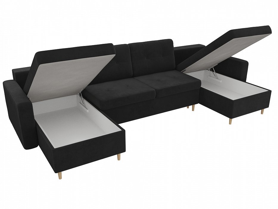 П-образный диван Белфаст Велюр Черный