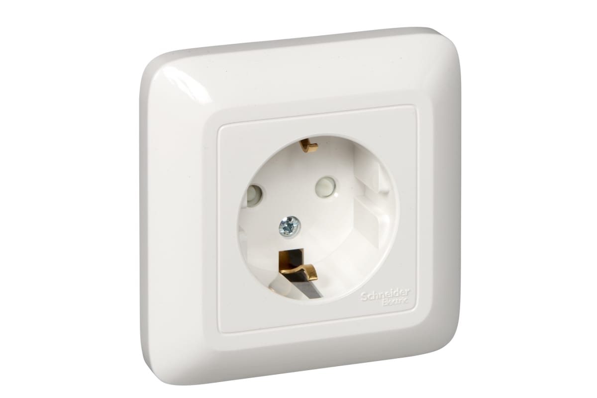 1-местная розетка Schneider Electric открытой проводки Прима 16А IP20 250В с заземлением белая RA16-003-1-BI