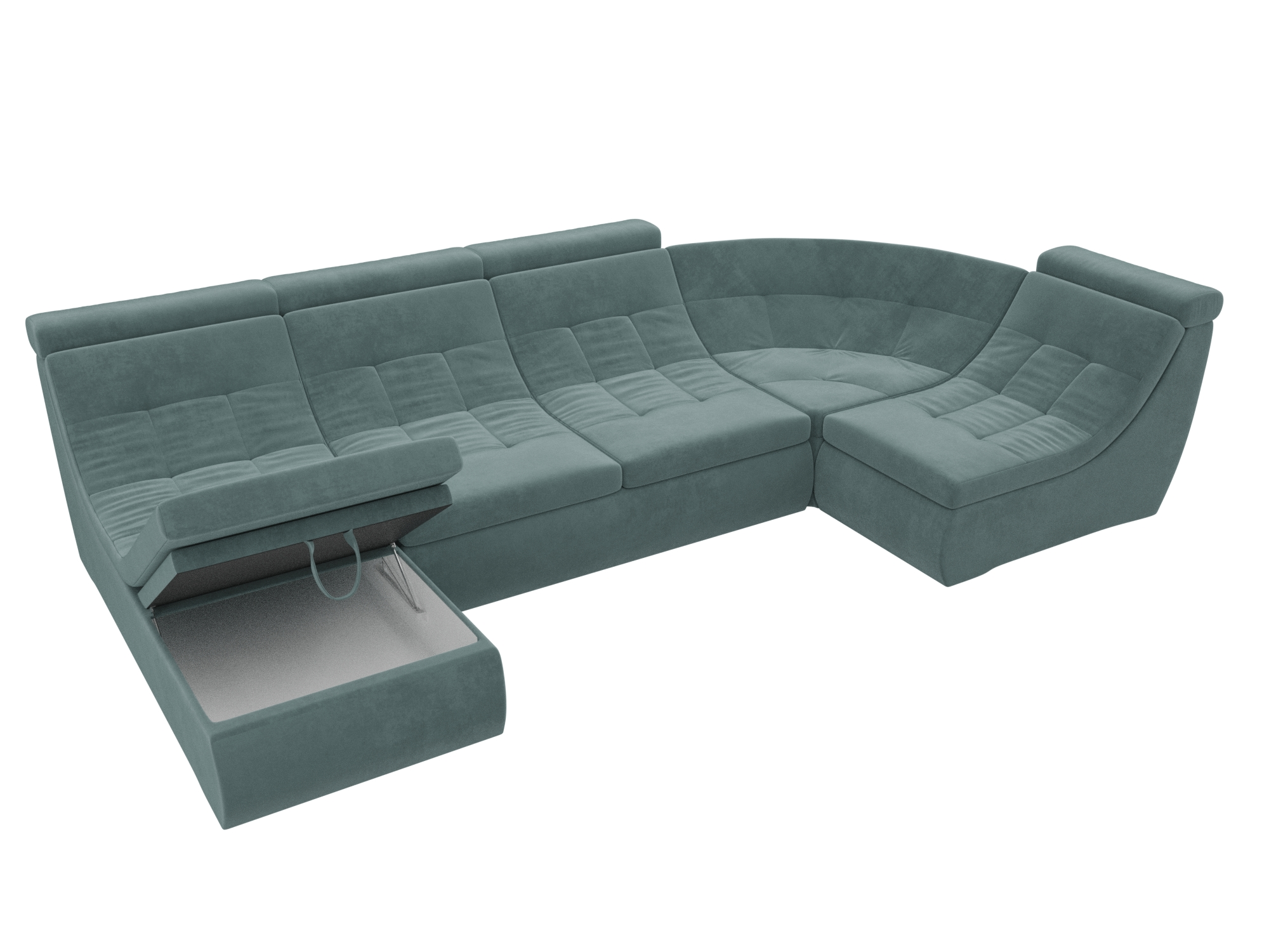 П-образный модульный диван Холидей Люкс Велюр бирюзовый