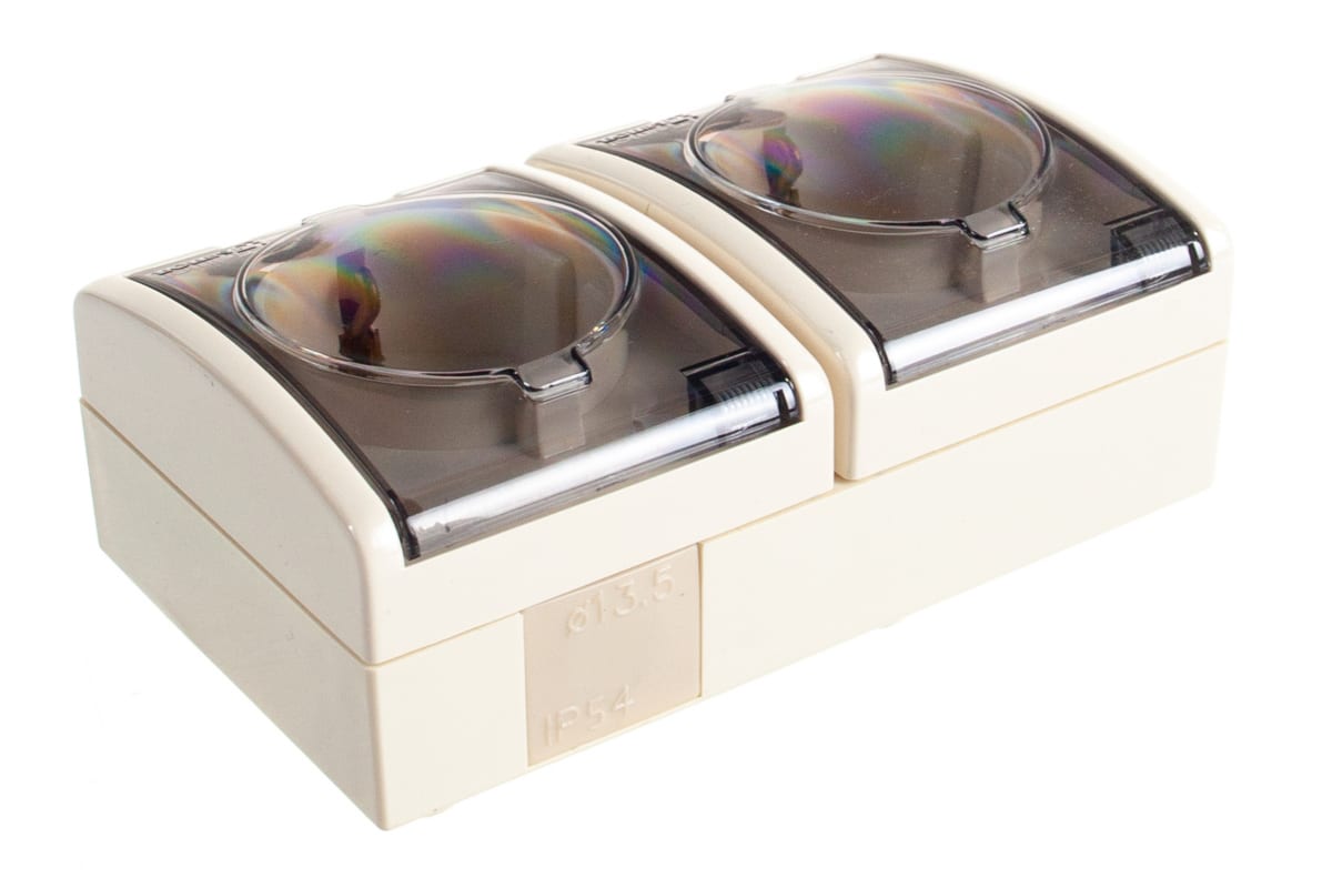 Двойная розетка с заземлением и крышкой, слоновая кость Simon 1594433-031 необходима для присоединения электрических приборов к сети. Розетка изготовлена из поликарбоната, стали и латуни. Оснащена заземлением и крышками для защиты от попадания пыли и влаги. Степень защиты IP54.