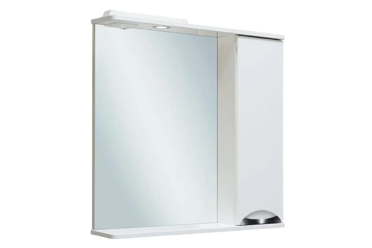 Зеркальный шкаф RUNO Барселона 75 правый 00000001033 оборудован одним врезным светодиодным светильником 220В и розеткой с выключателем.