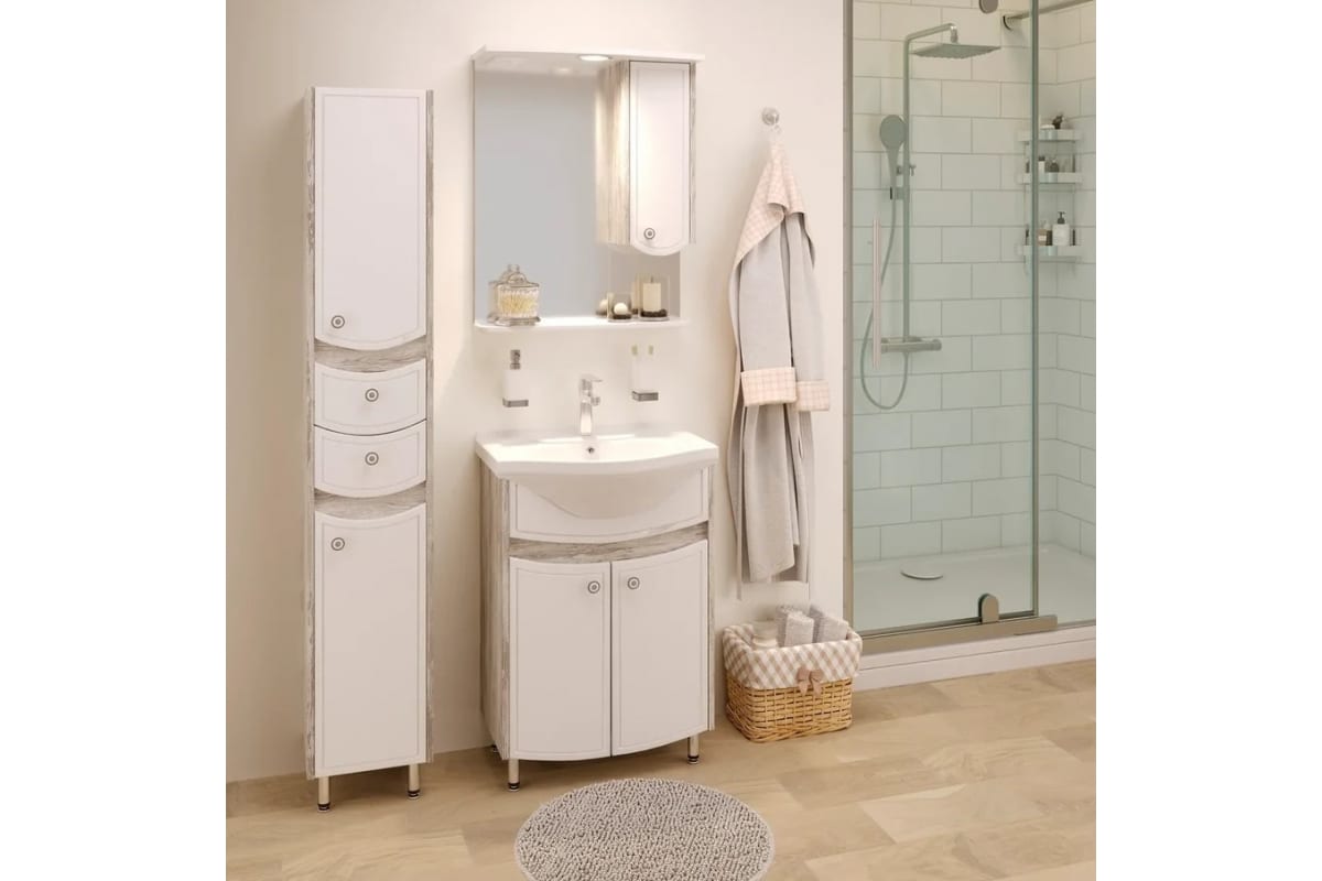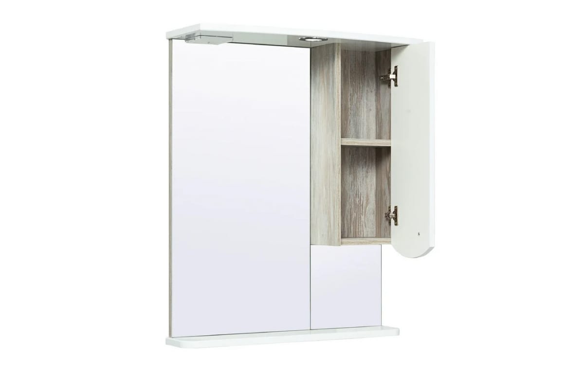 Зеркальный шкаф RUNO Аликанте 60 правый 00000000612 оборудован одним врезным светодиодным светильником 220В и розеткой с выключателем.