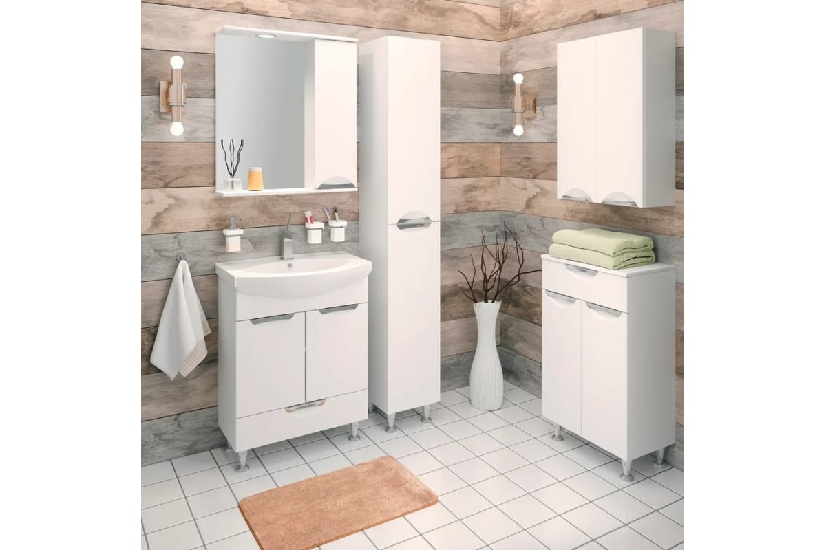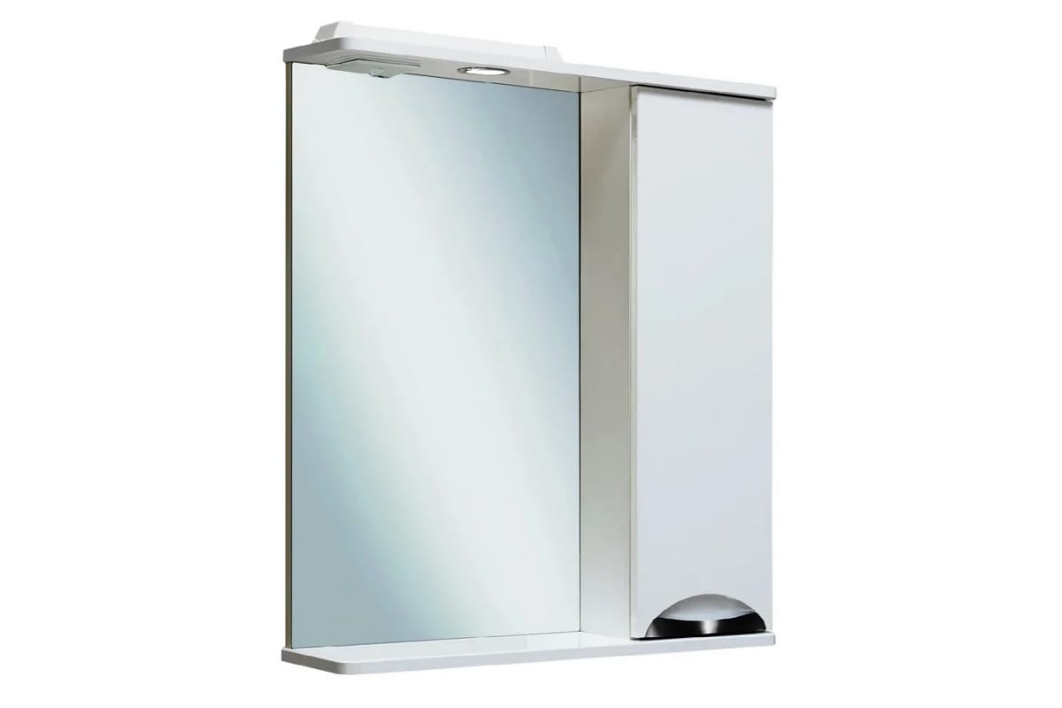 Зеркальный шкаф RUNO Барселона 65 правый 00000001036 оборудован одним врезным светодиодным светильником 220В и розеткой с выключателем.