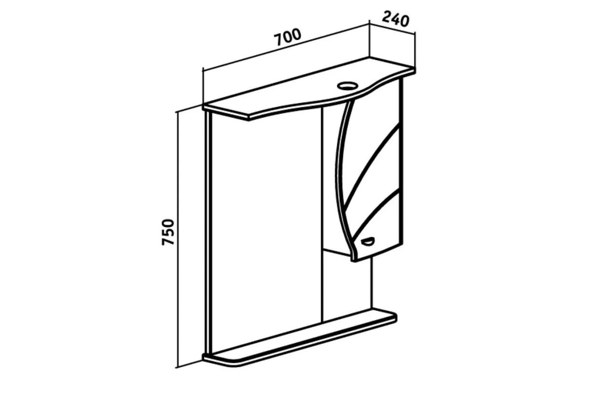Зеркальный шкаф RUNO Глория 70 правый 00000000929