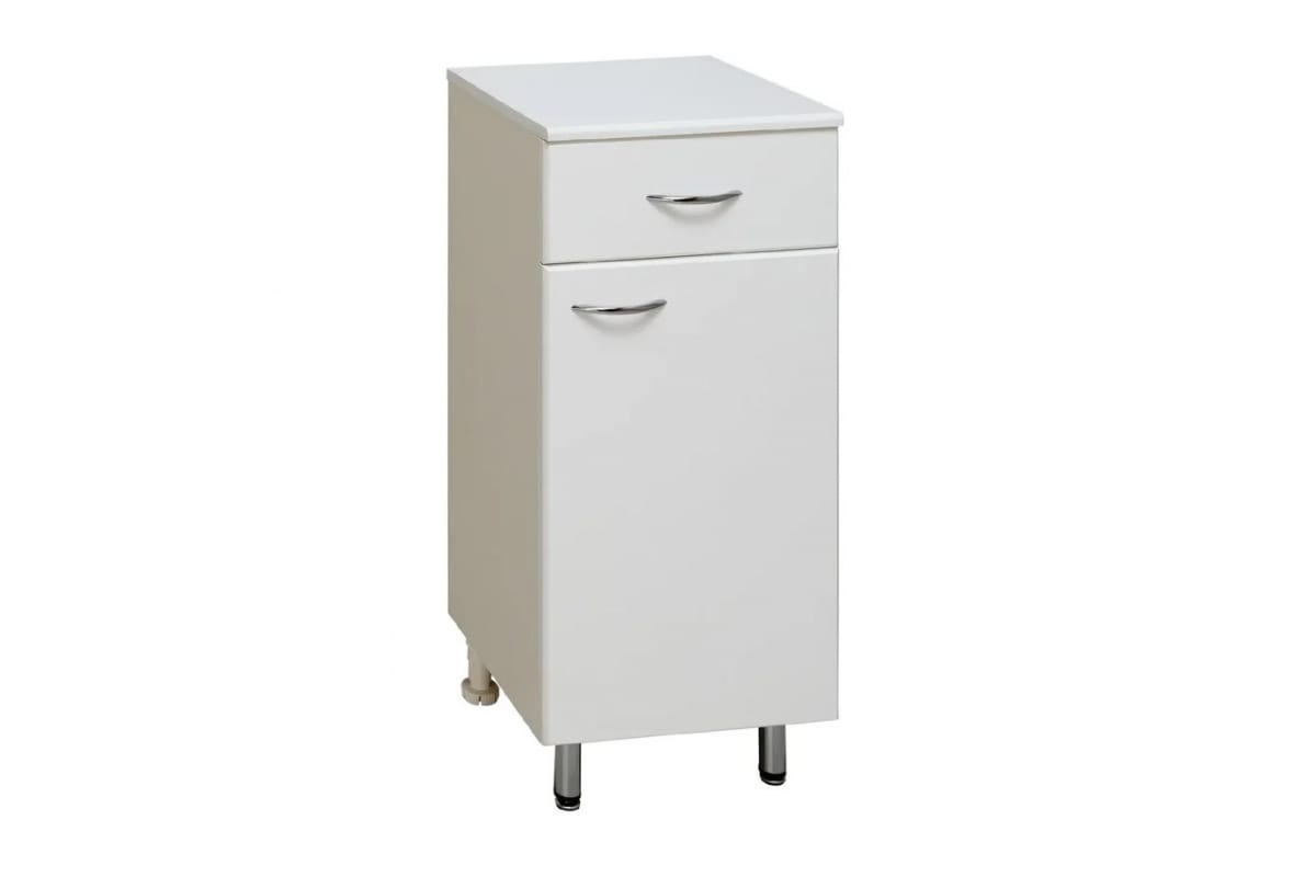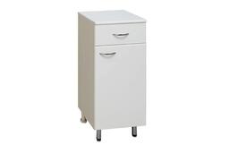 Тумба имеет одну распашную дверцу и один выдвижной ящик на шариковых направляющих. В нижнем отделении - одна встроенная полка.