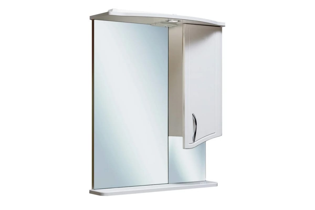 Зеркало настенное со шкафчиком и полкой RUNO СЕВИЛЬЯ - безупречная классика в современном исполнении в оформлении ванной комнаты. Зеркало для ванной со шкафчиком СЕВИЛЬЯ представляет собой зеркало настенное (слева) и шкаф в ванную с одной дверцей (справа). В шкафу имеются две внутренние полки. Шкаф для ванной оборудован одним врезным светодиодным светильником 220 В, розеткой с выключателем, петлями со встроенным доводчиком и ручкой. Мебель для ванной RUNO - красота и практичность в мелочах!