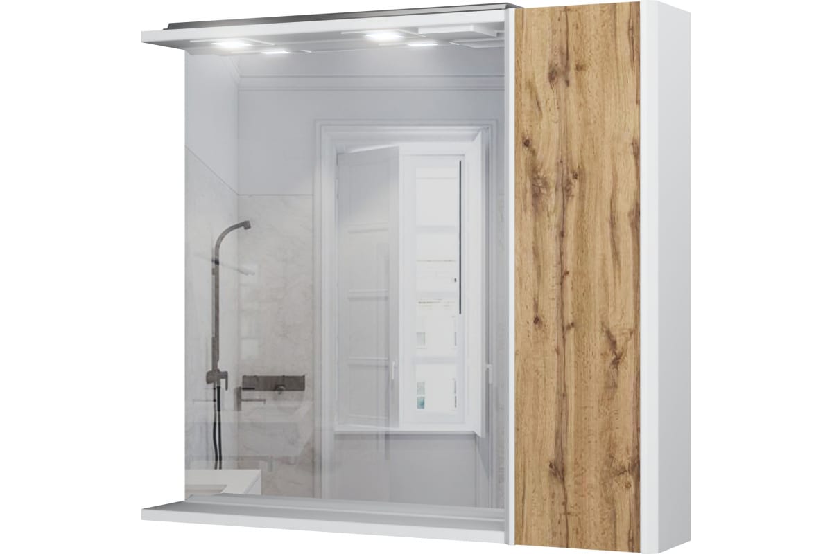 Шкаф-зеркало Домино Uno 80 Дуб Вотан, правый DU1511HZ отражает современные тенденции в дизайне мебели для ванных комнат. Четкие геометрические формы и сочетания древесной текстуры с белым глянцем позволяет создать стильные и функциональные интерьеры.