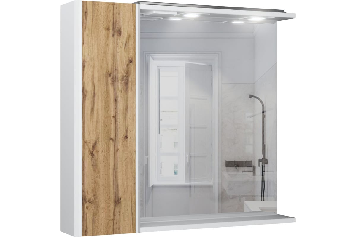 Шкаф-зеркало Домино Uno 80 Дуб Вотан, левый DU1509HZ отражает современные тенденции в дизайне мебели для ванных комнат. Четкие геометрические формы и сочетания древесной текстуры с белым глянцем позволяет создать стильные и функциональные интерьеры.