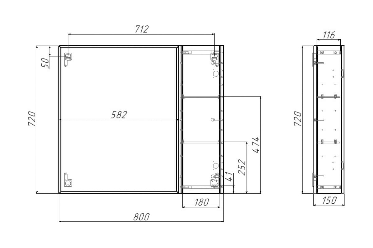 Шкаф-зеркало Домино Uno 80 Дуб Вотан, левый DU1509HZ