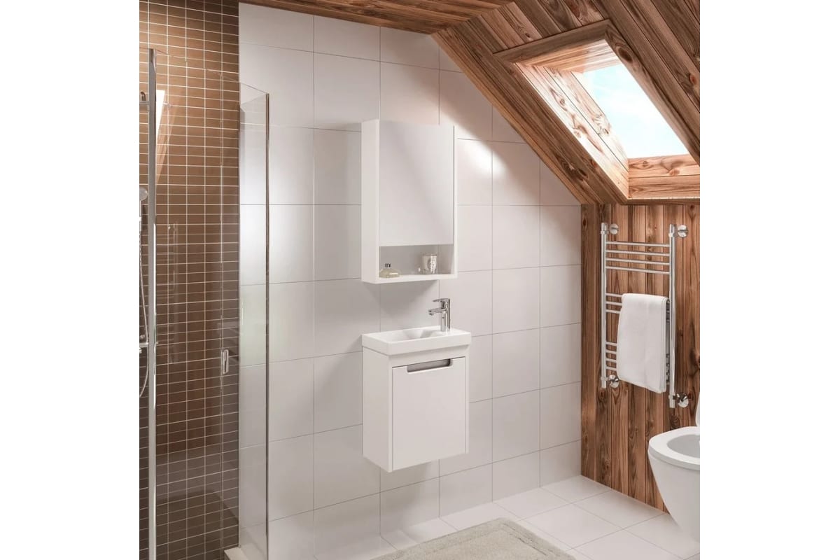 Зеркальный шкаф для ванной RUNO МИКРА - идеальный вариант для экономии пространства ванной комнаты. Подойдет для установки как в квартире, так и на даче. Миниатюрный шкаф зеркало для ванной выполнен в классическом белом цвете и отлично впишется в любой интерьер ванной комнаты. Шкафчик в ванную имеет одну распашную дверцу с зеркальным фасадом и открытую полку. Шкаф в ванную оборудован петлями со встроенным доводчиком. Внутри шкафа - одна внутренняя полка. Мебель для ванной RUNO - красота и практичность в мелочах!