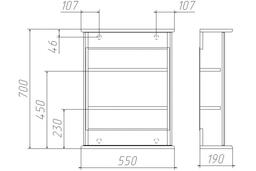 Корпус изготовлен из ЛДСП, а фасад из ЛМДФ, покрыт пленкой ПВХ. Для удобства в использовании на дверце установлены петли с доводчиком.