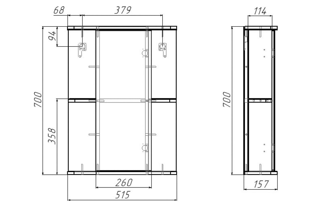 Шкаф-зеркало Айсберг Норма 2-50 правый DA1608HZ