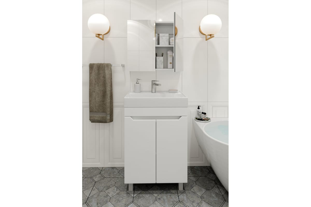 Шкаф-зеркало Айсберг Мечта 50 DM2303HZ предназначен для компактных санузлов.