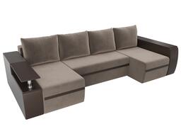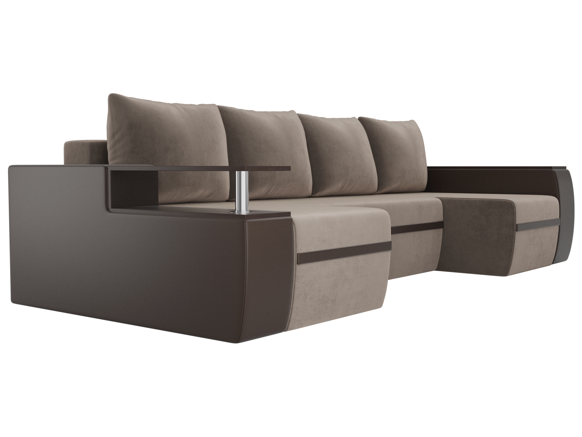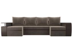 П-образный диван Майами Велюр\Экокожа коричневый\коричневый