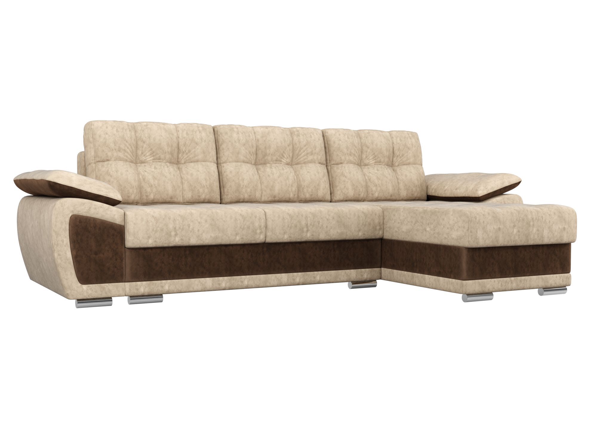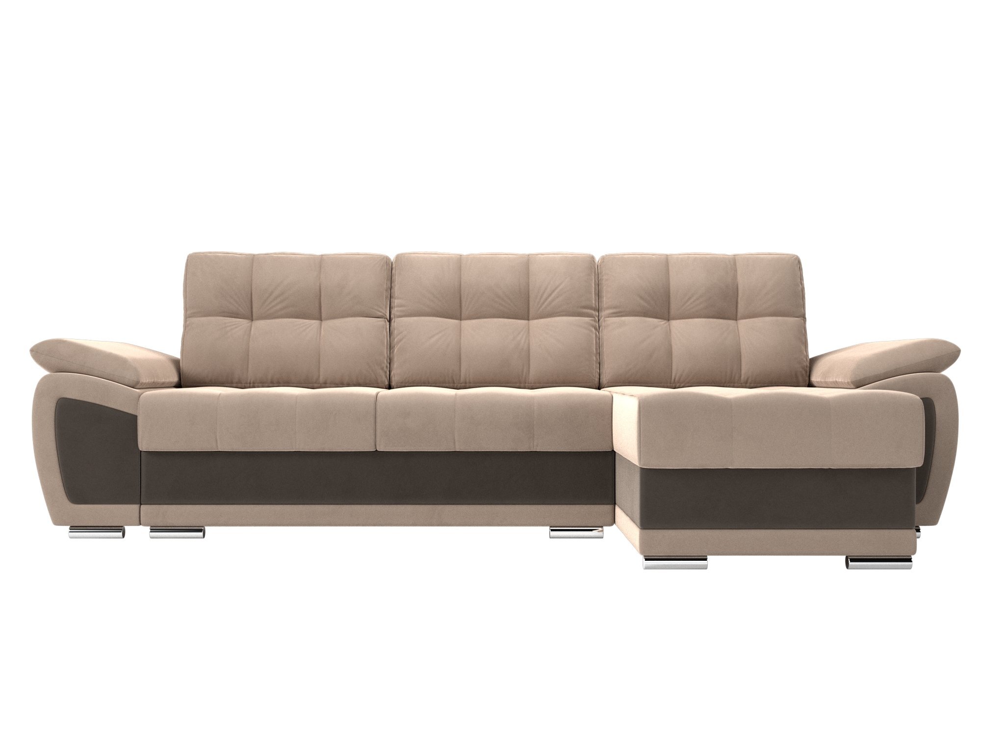 Угловой диван Нэстор Велюр бежевый\коричневый
