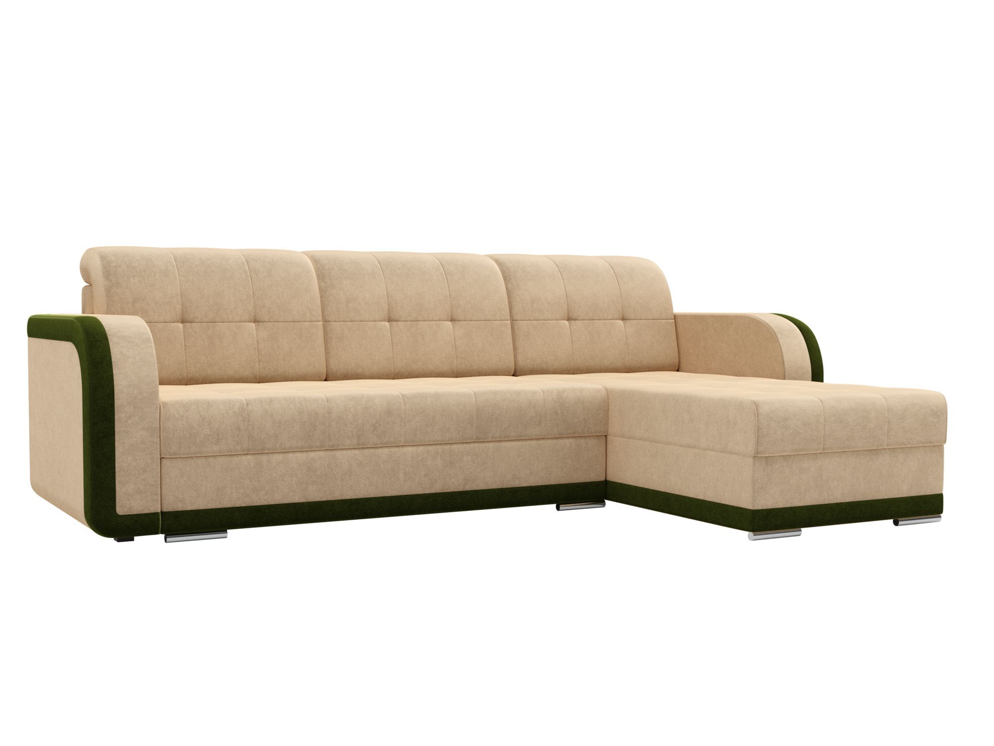 Угловой диван Марсель Микровельвет бежевый\зеленый