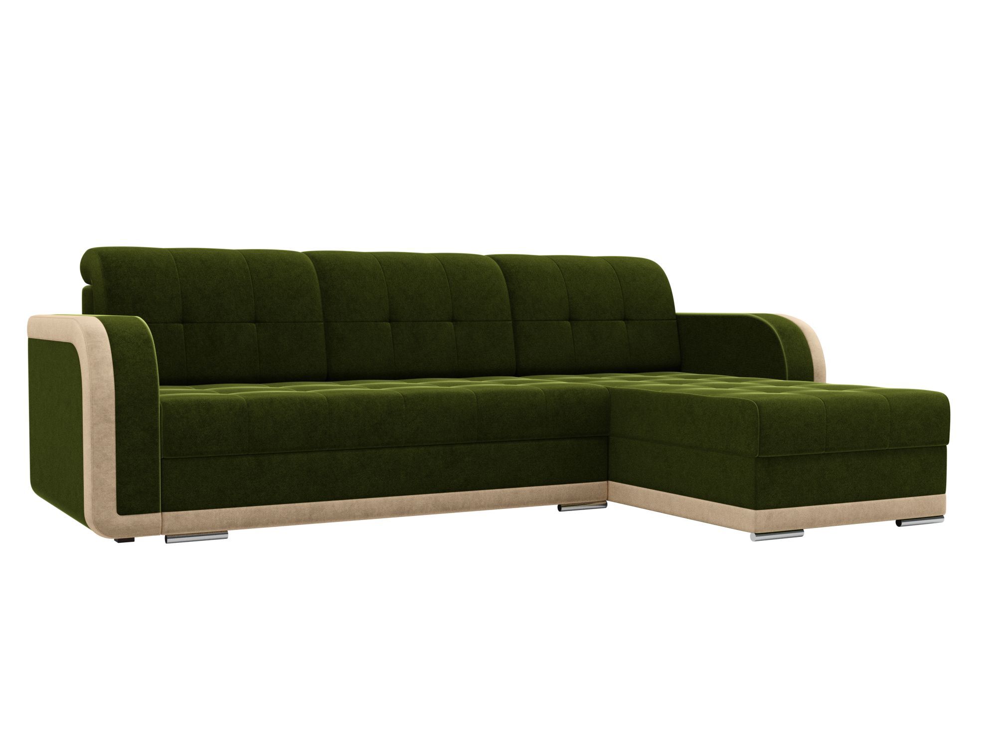 Угловой диван Марсель Микровельвет Зеленый\Бежевый