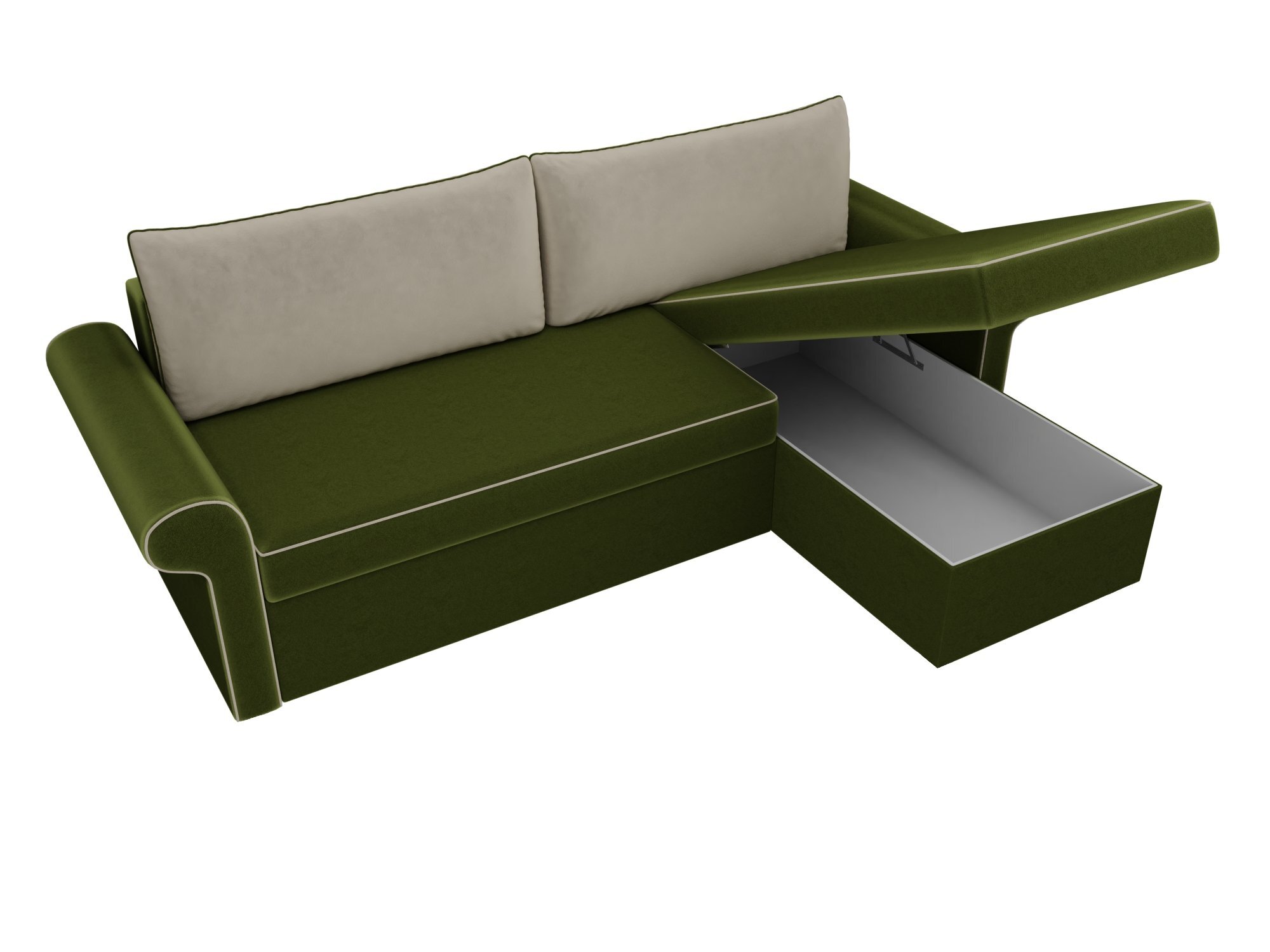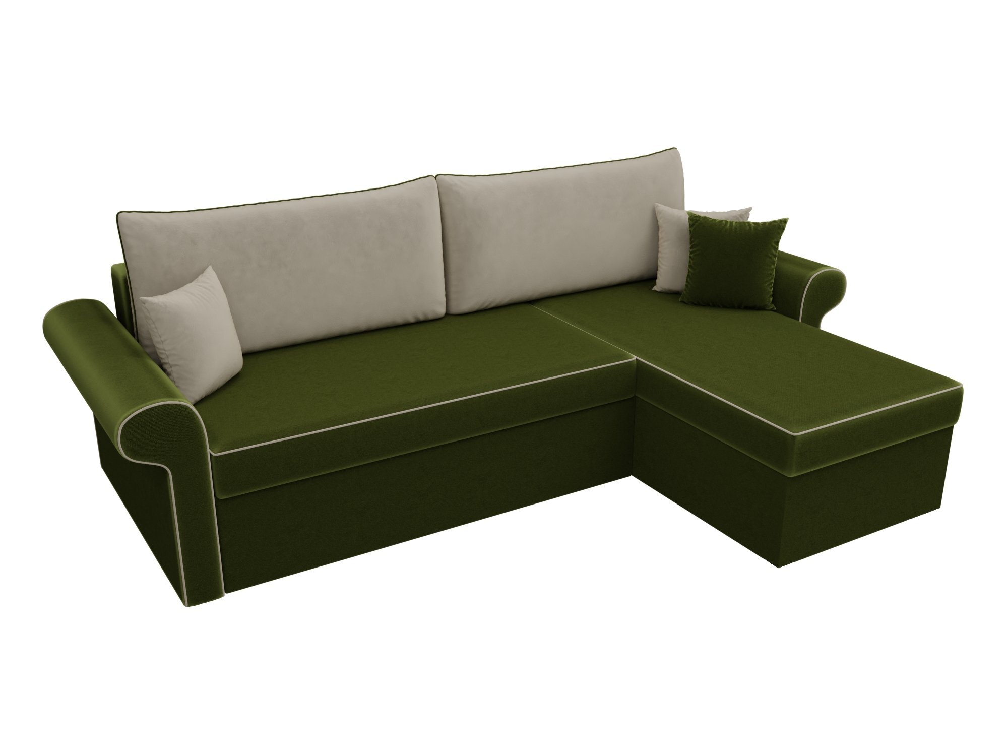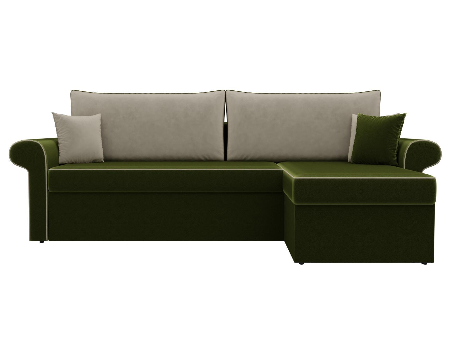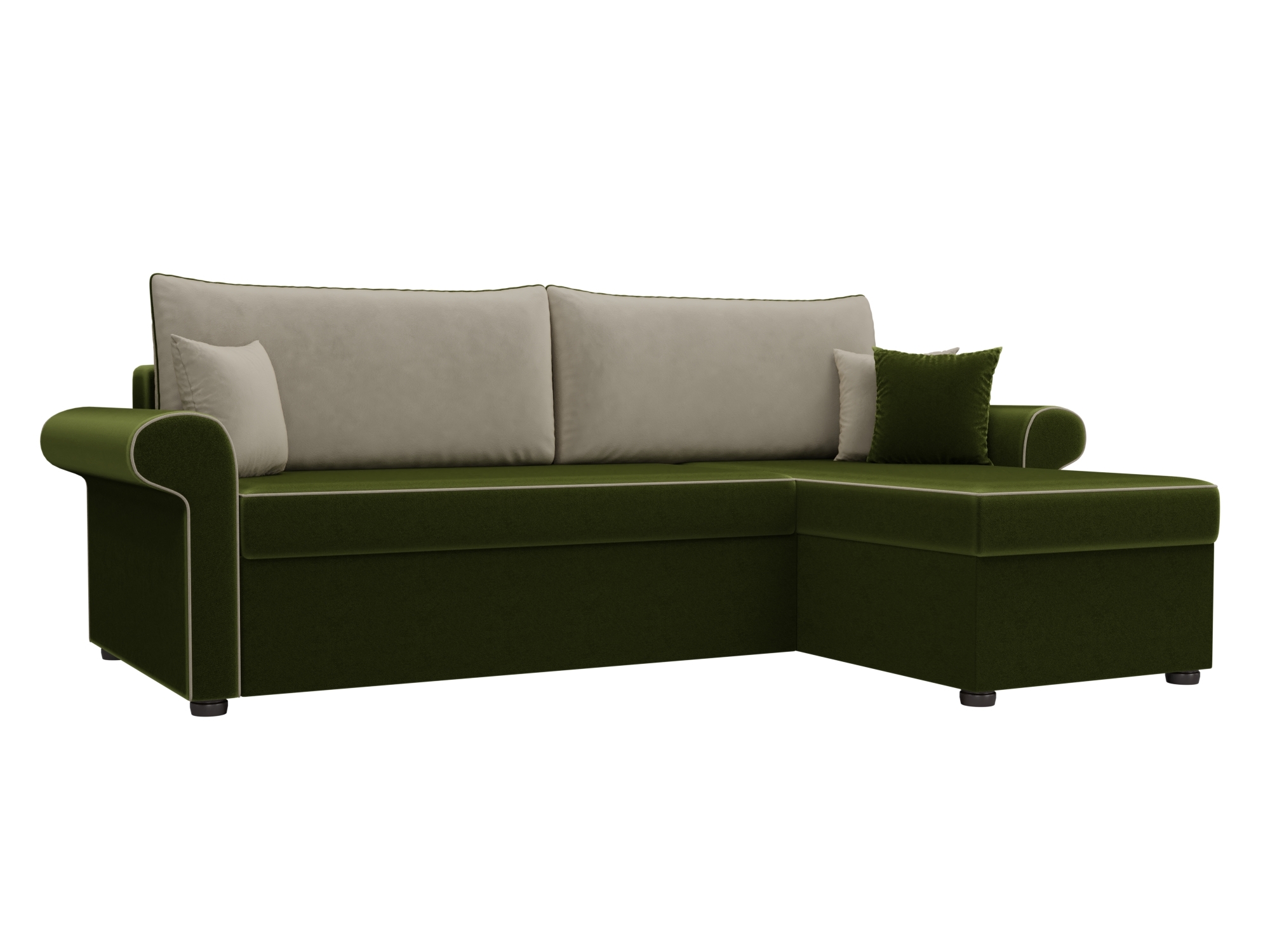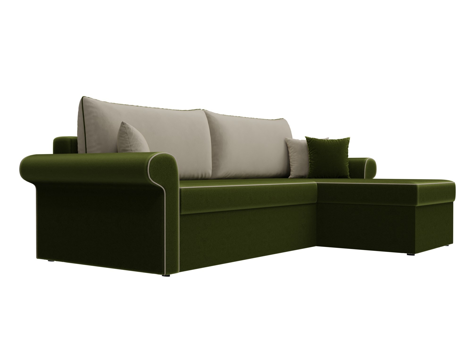 Угловой диван Милфорд Микровельвет Зеленый\Бежевый