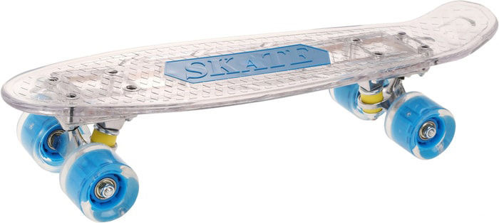Пенниборд, дека: пластик, длина 22 , ширина 5.9 , до 70 кг, подшипник ABEC 7, прозрачный, голубой.
