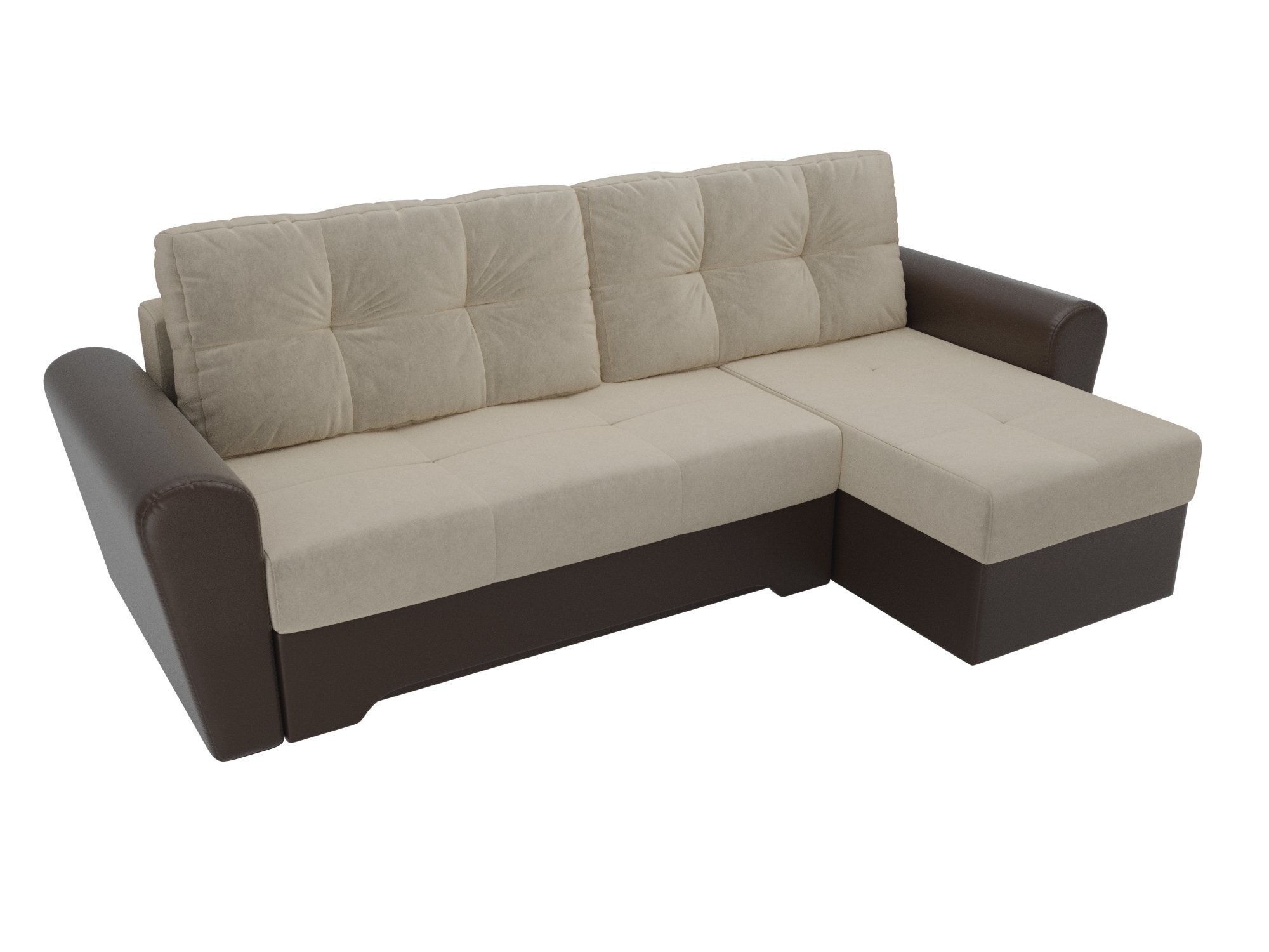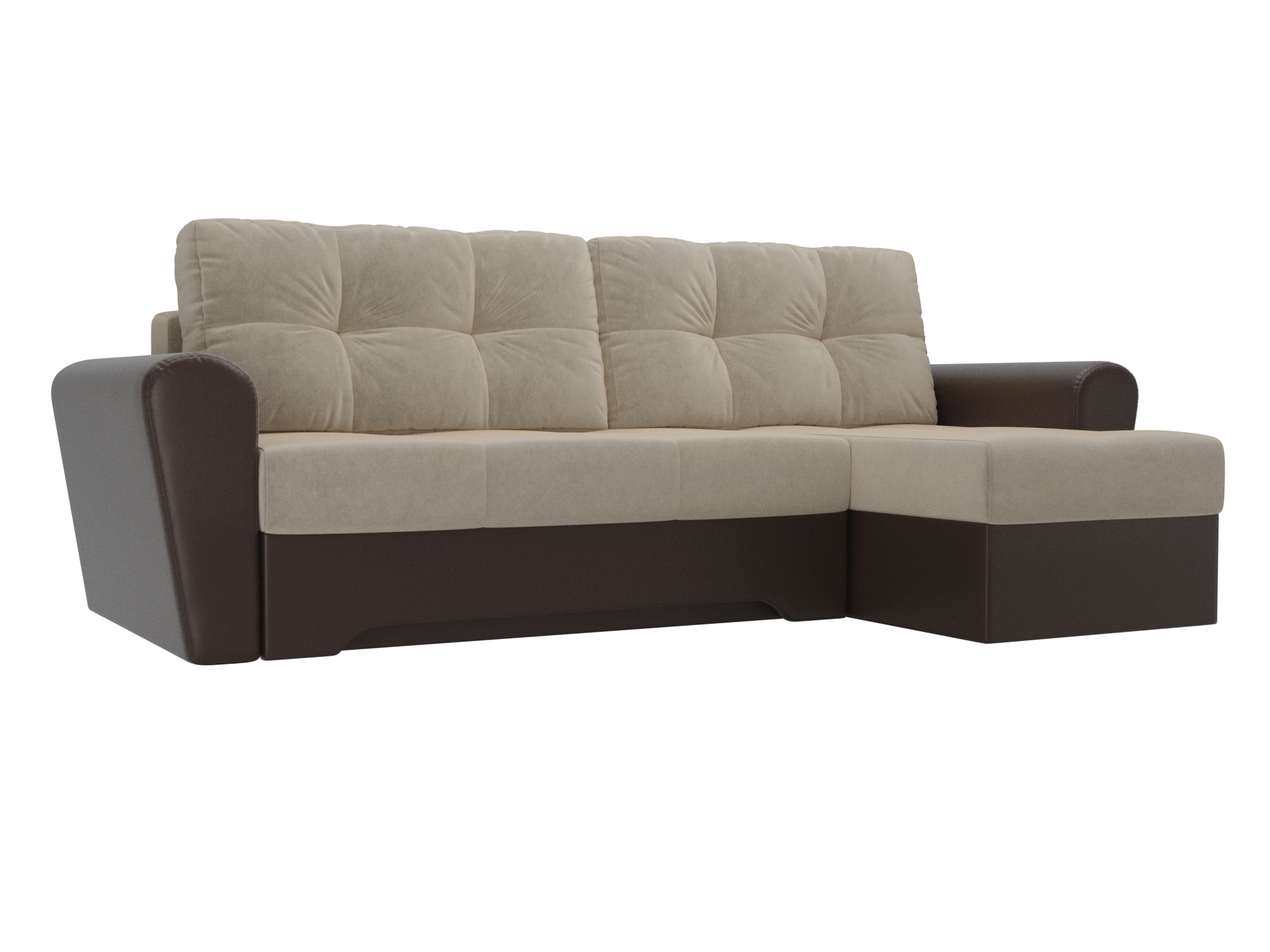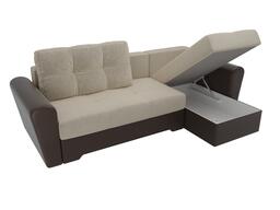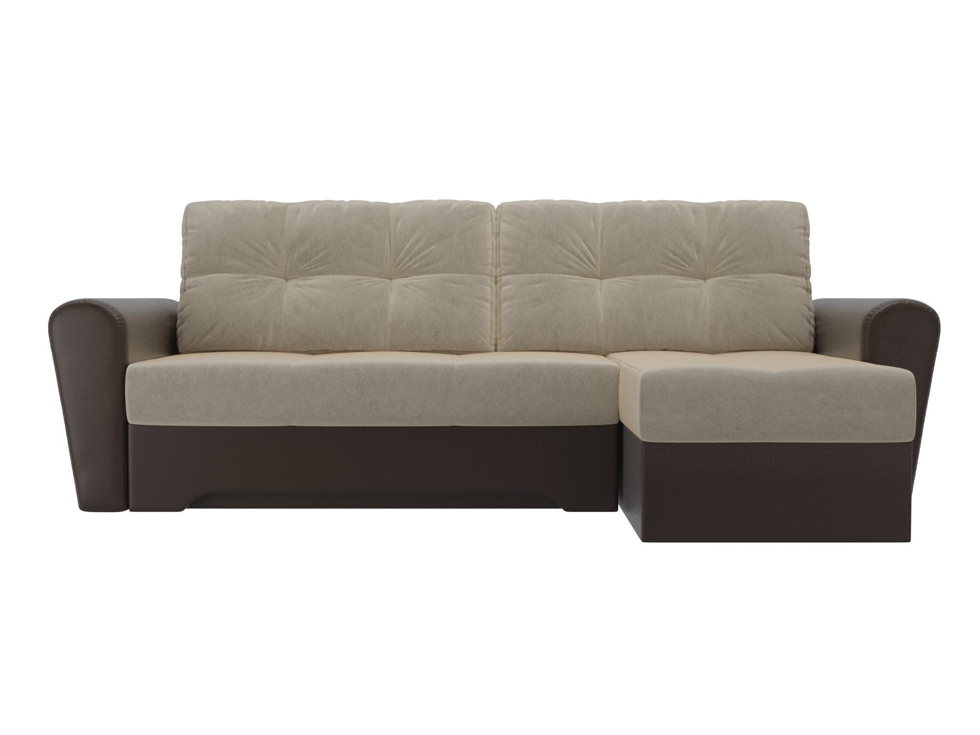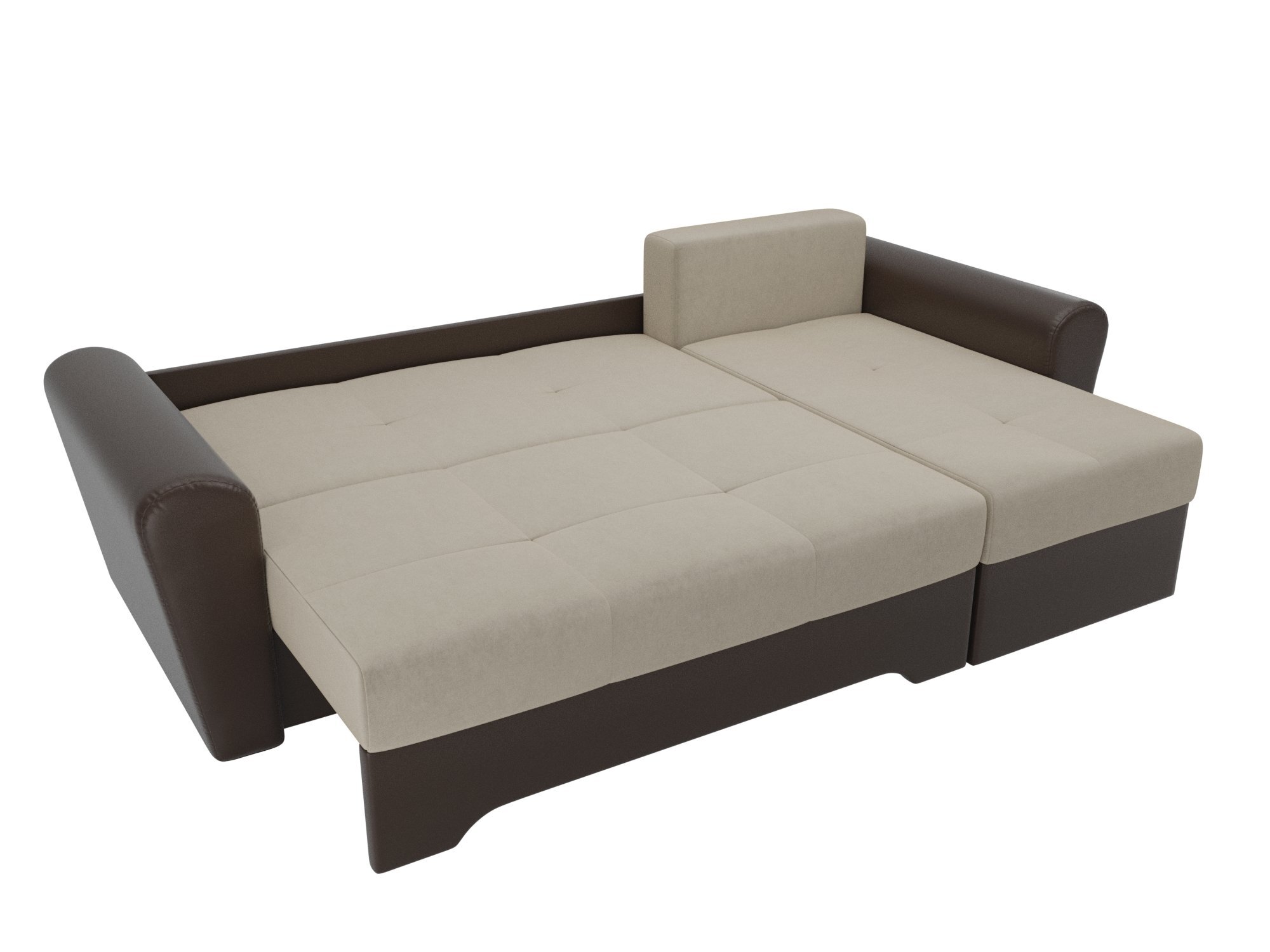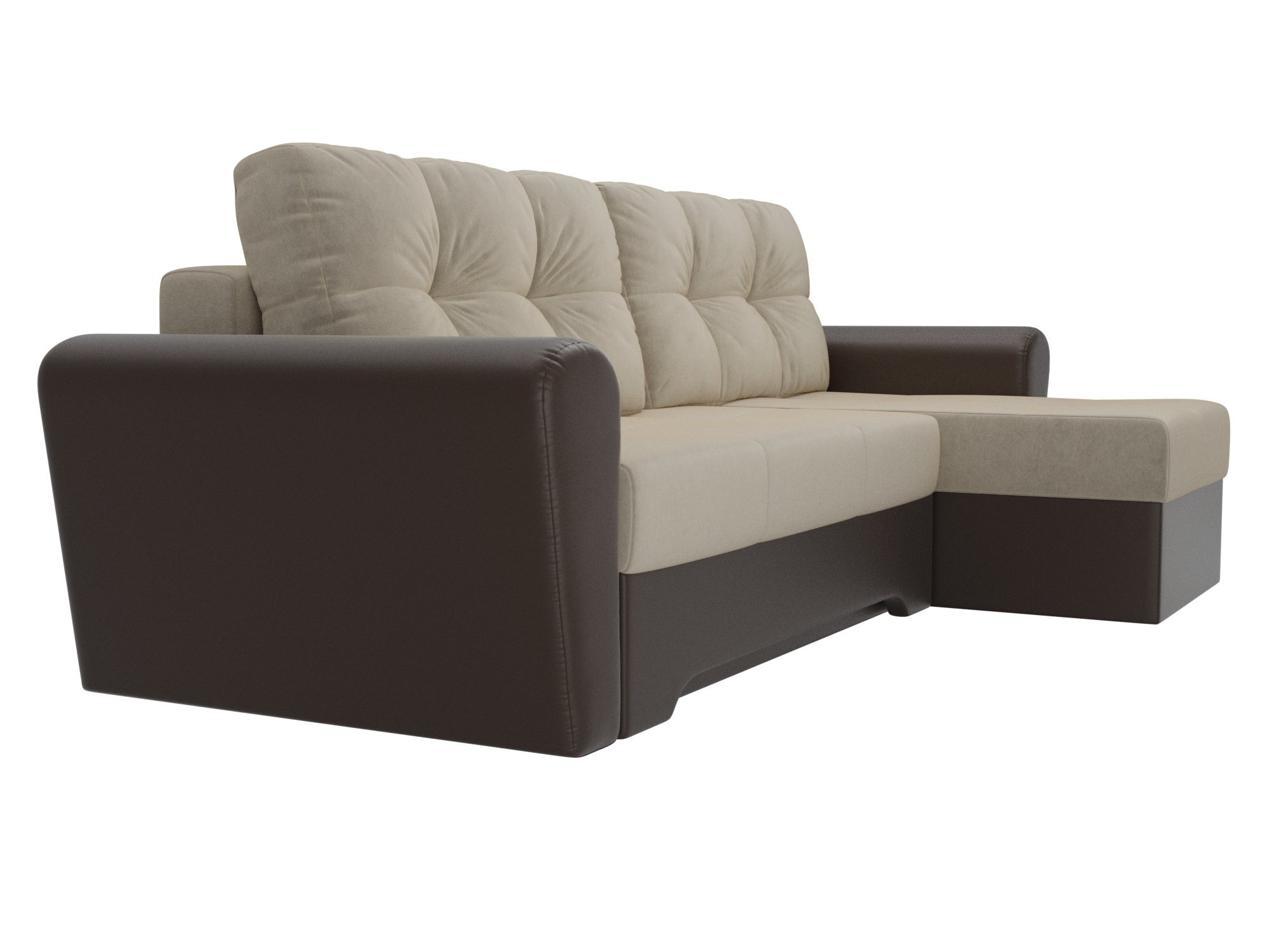 Угловой диван Амстердам Микровельвет\Экокожа бежевый\коричневый
