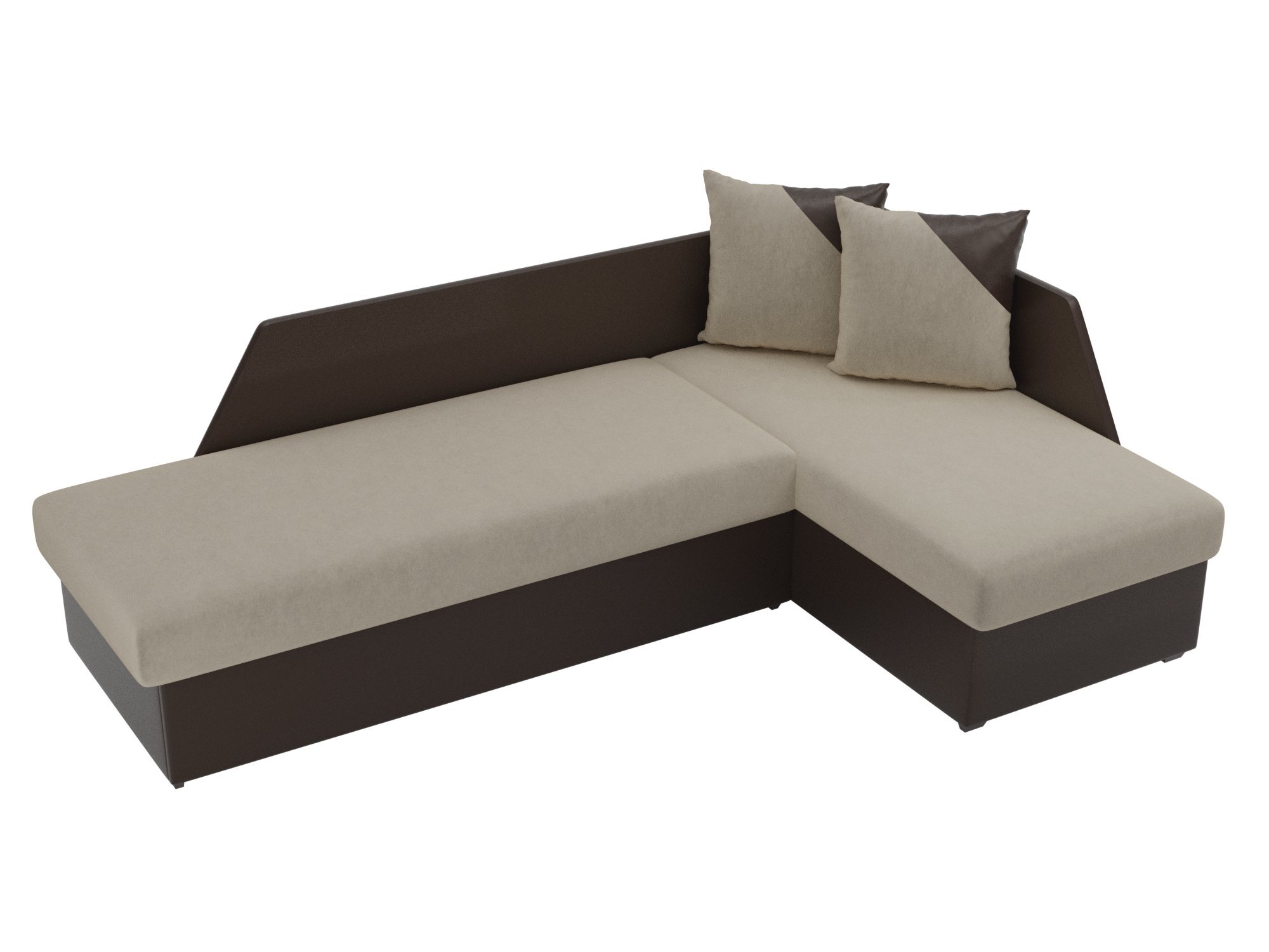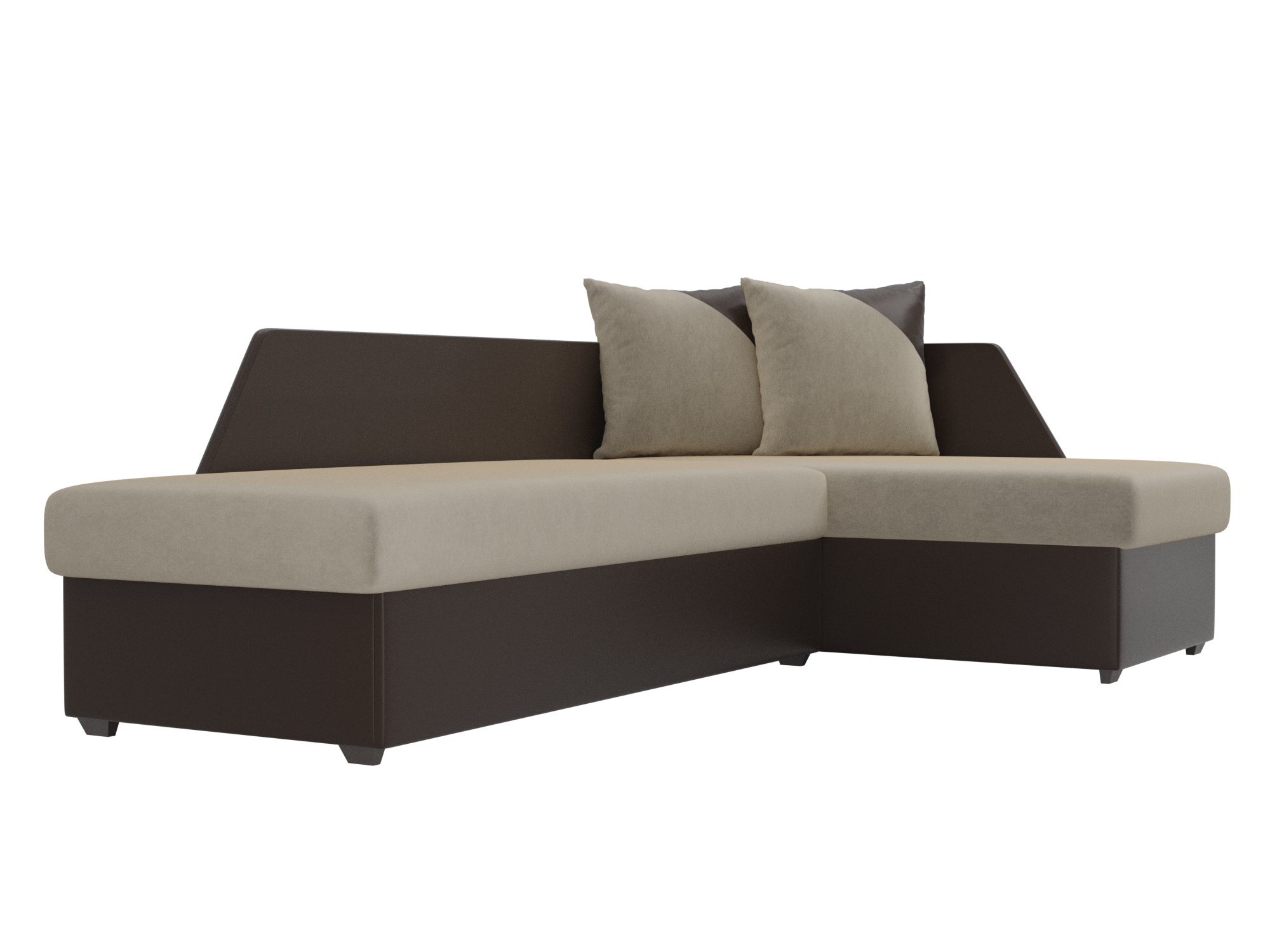 Угловой диван Андора Микровельвет\Экокожа бежевый\коричневый