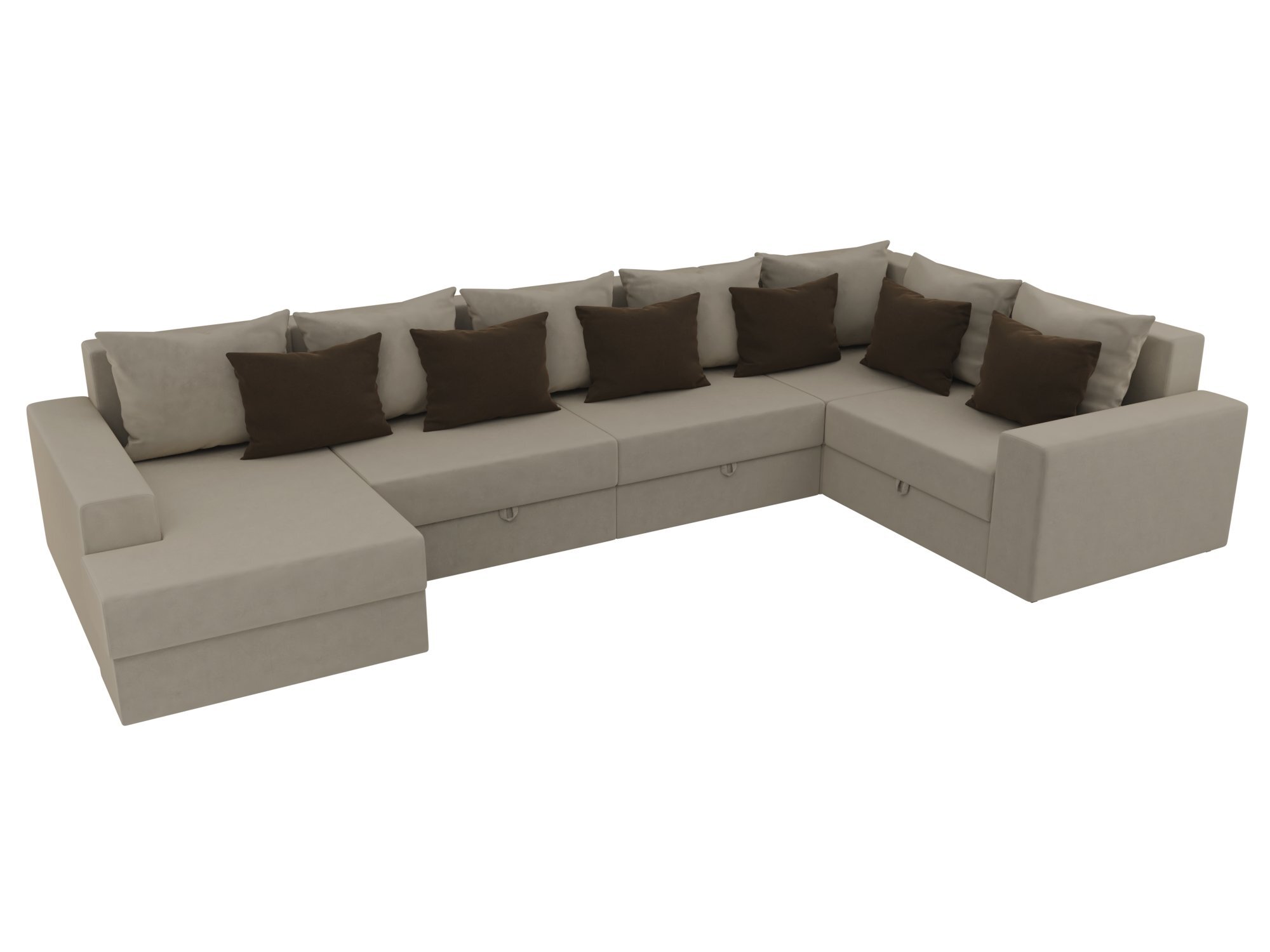 П-образный диван Мэдисон Микровельвет Бежевый\Бежевый\Коричневый