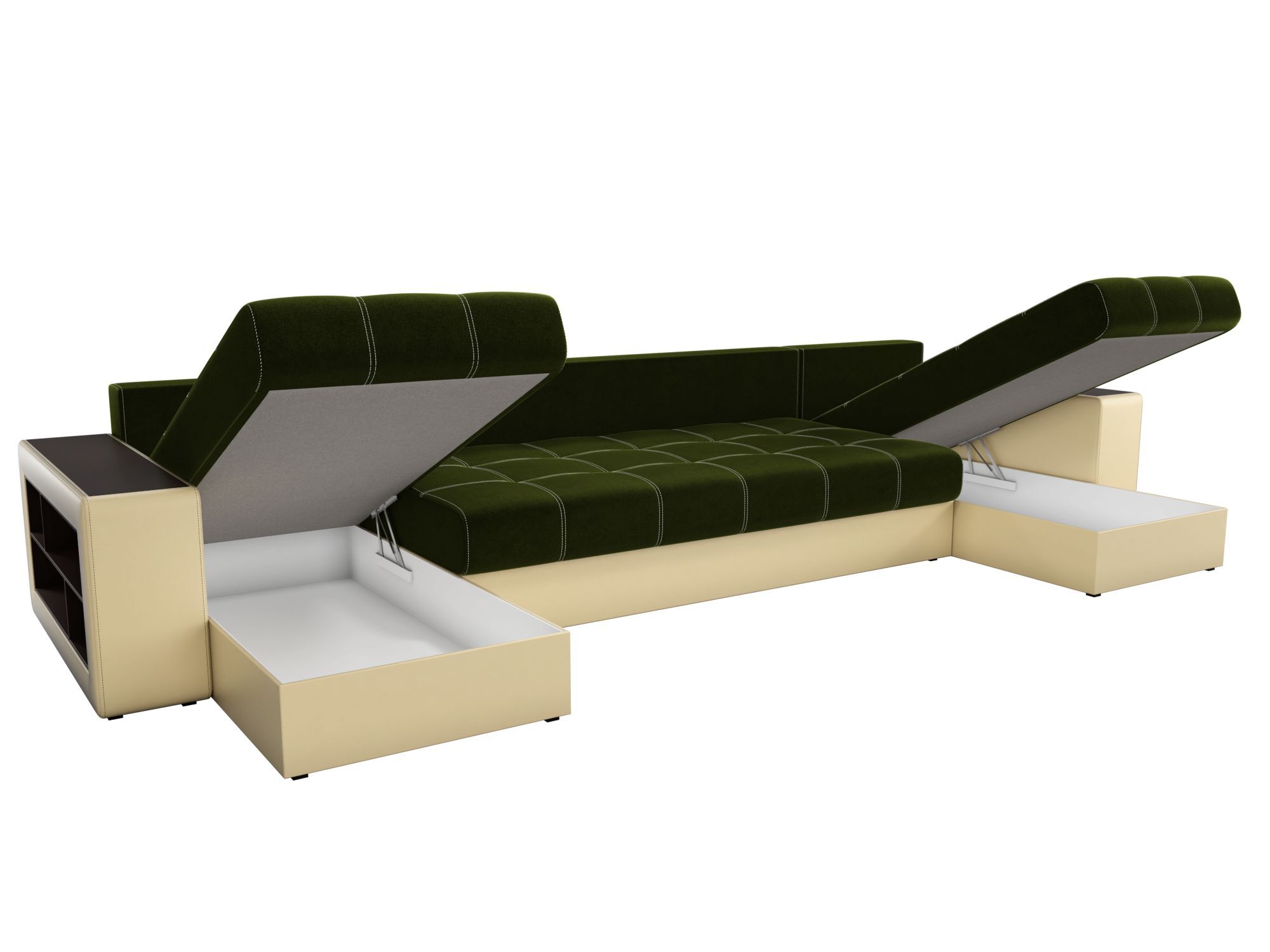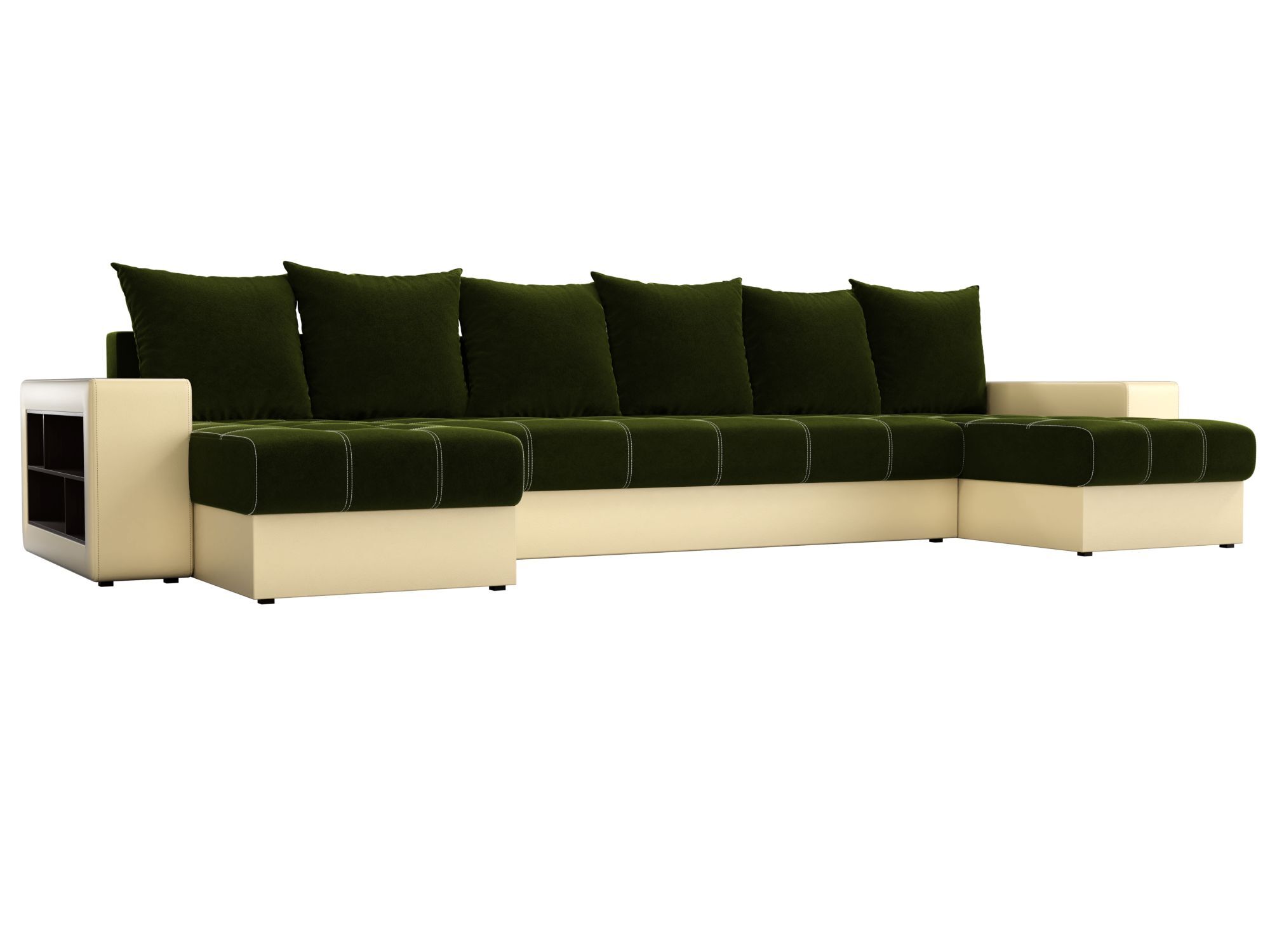П-образный диван Дубай Микровельвет\Экокожа Зеленый\Бежевый