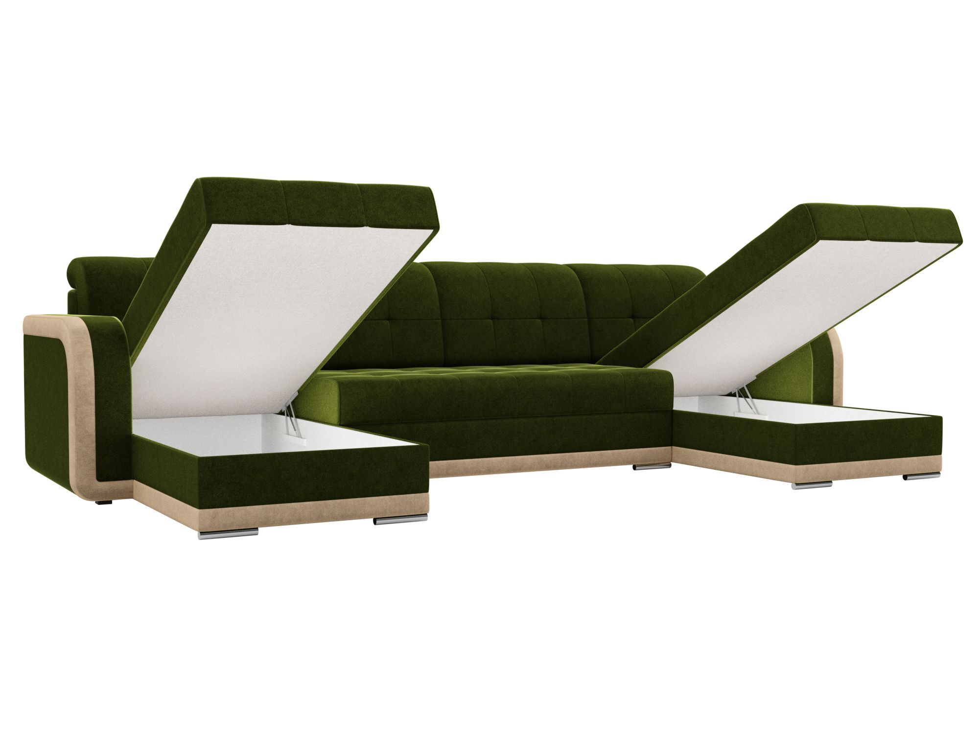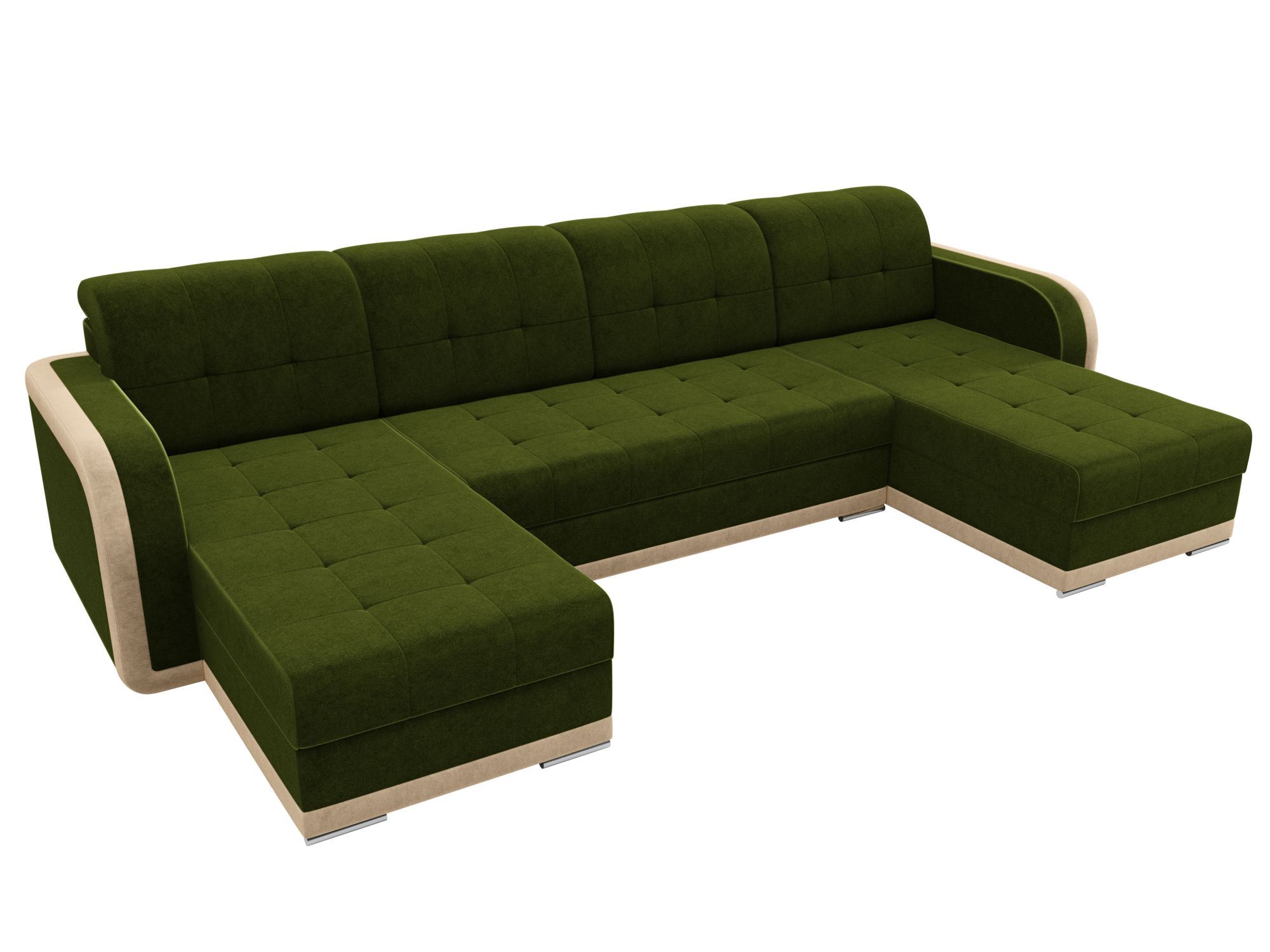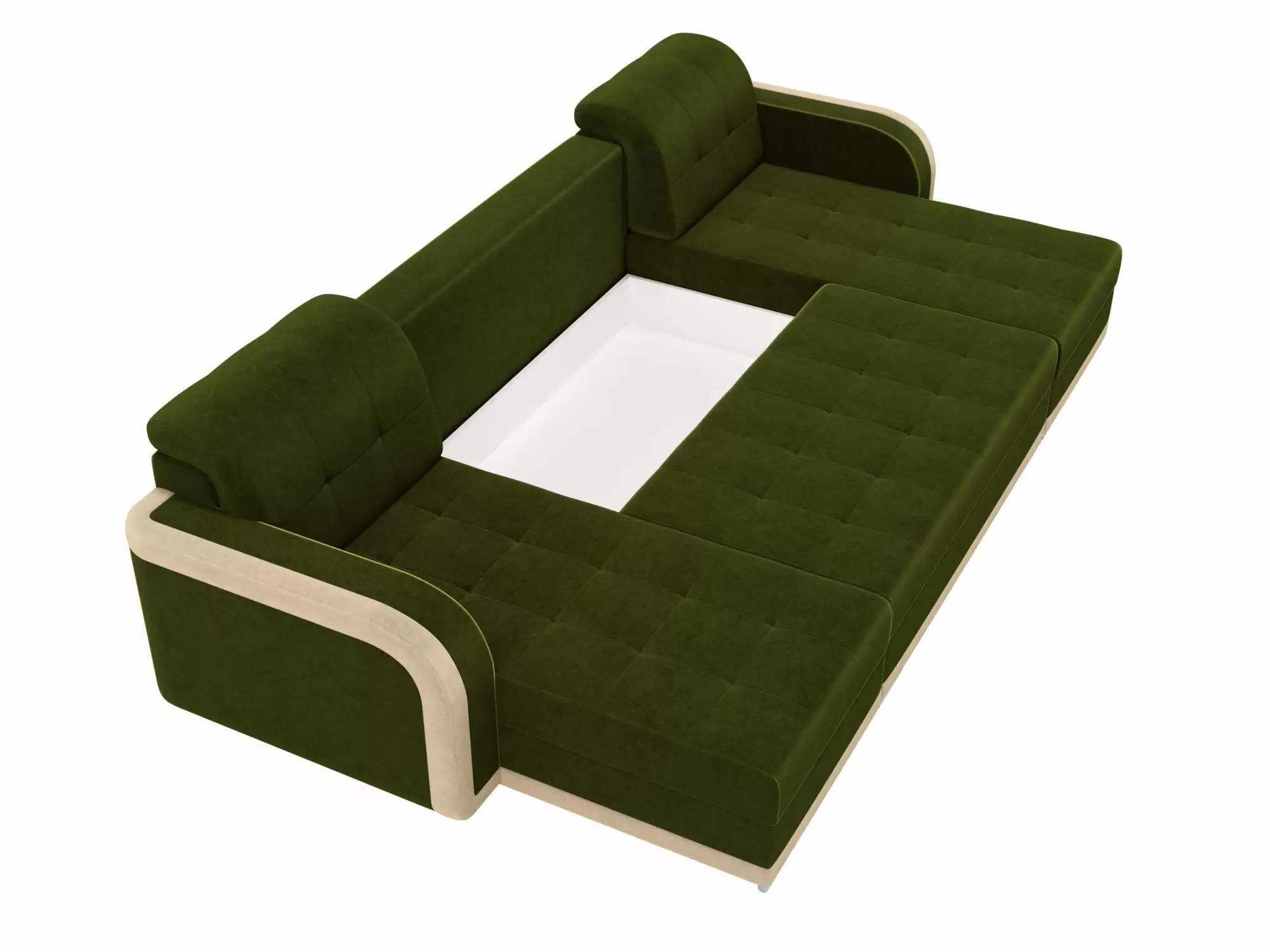 П-образный диван Марсель Микровельвет Зеленый\Бежевый