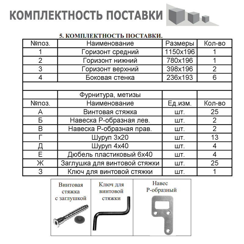 - Размеры (ВхШхГ), в сантиметрах 52х115х20