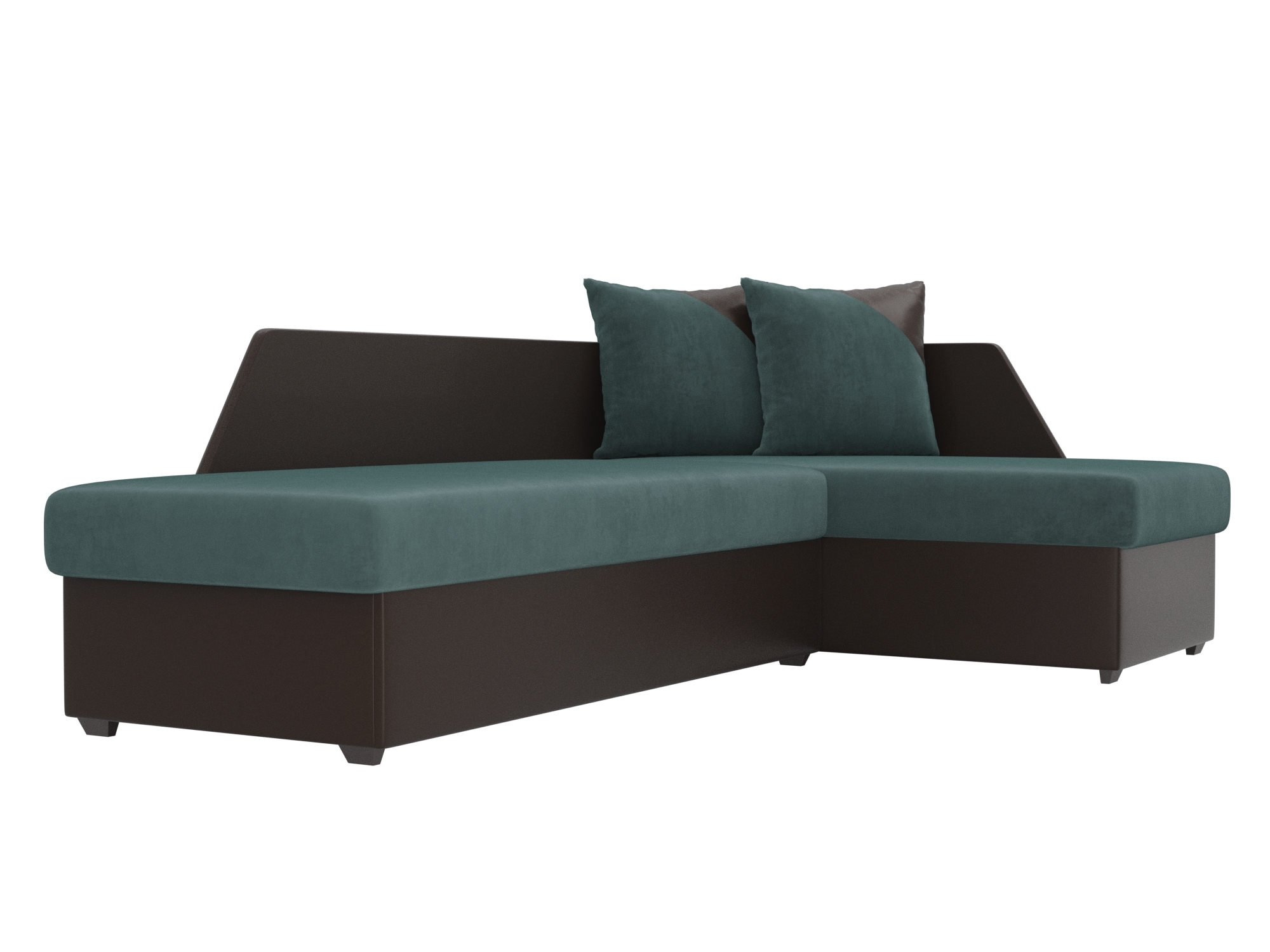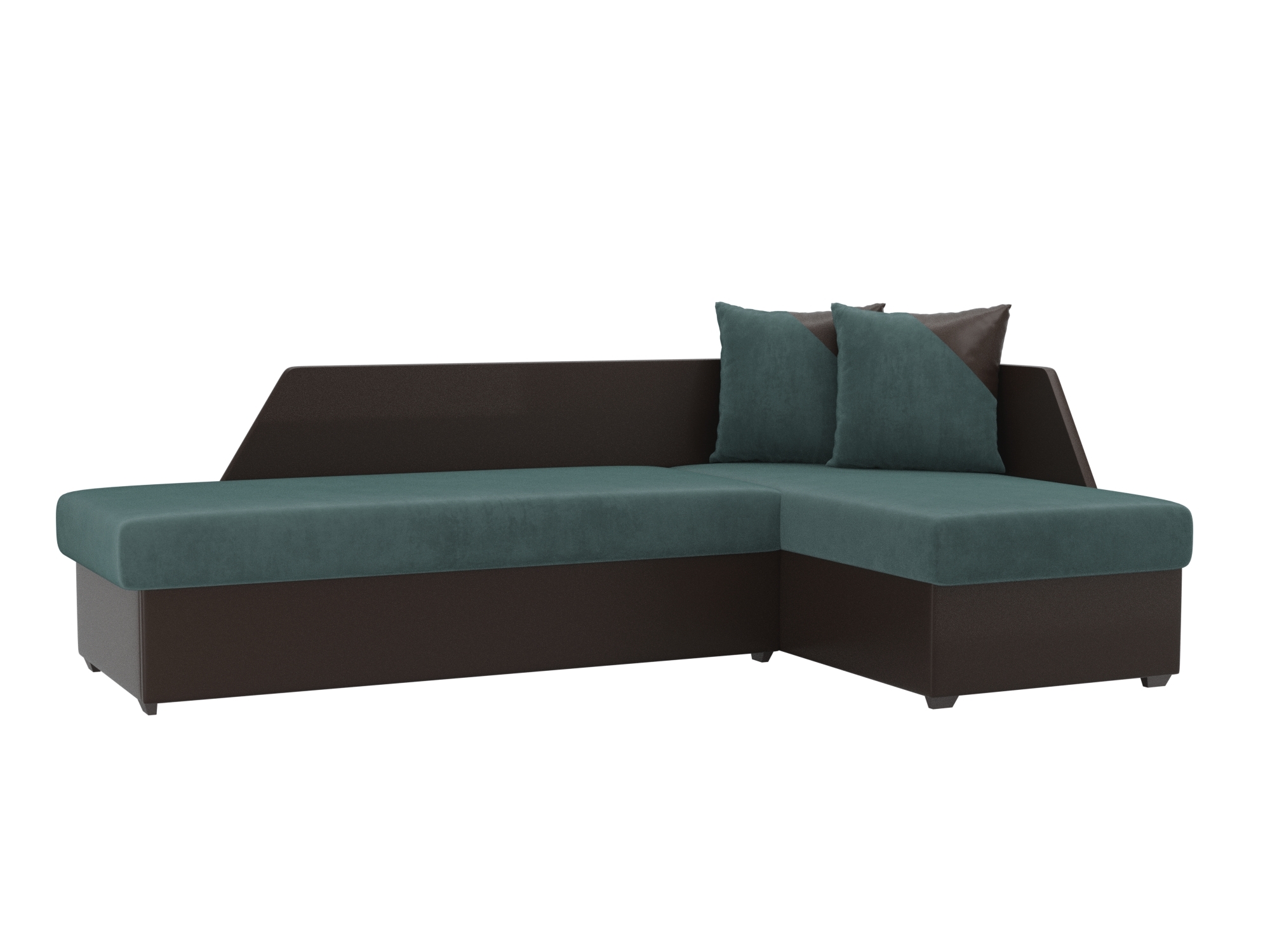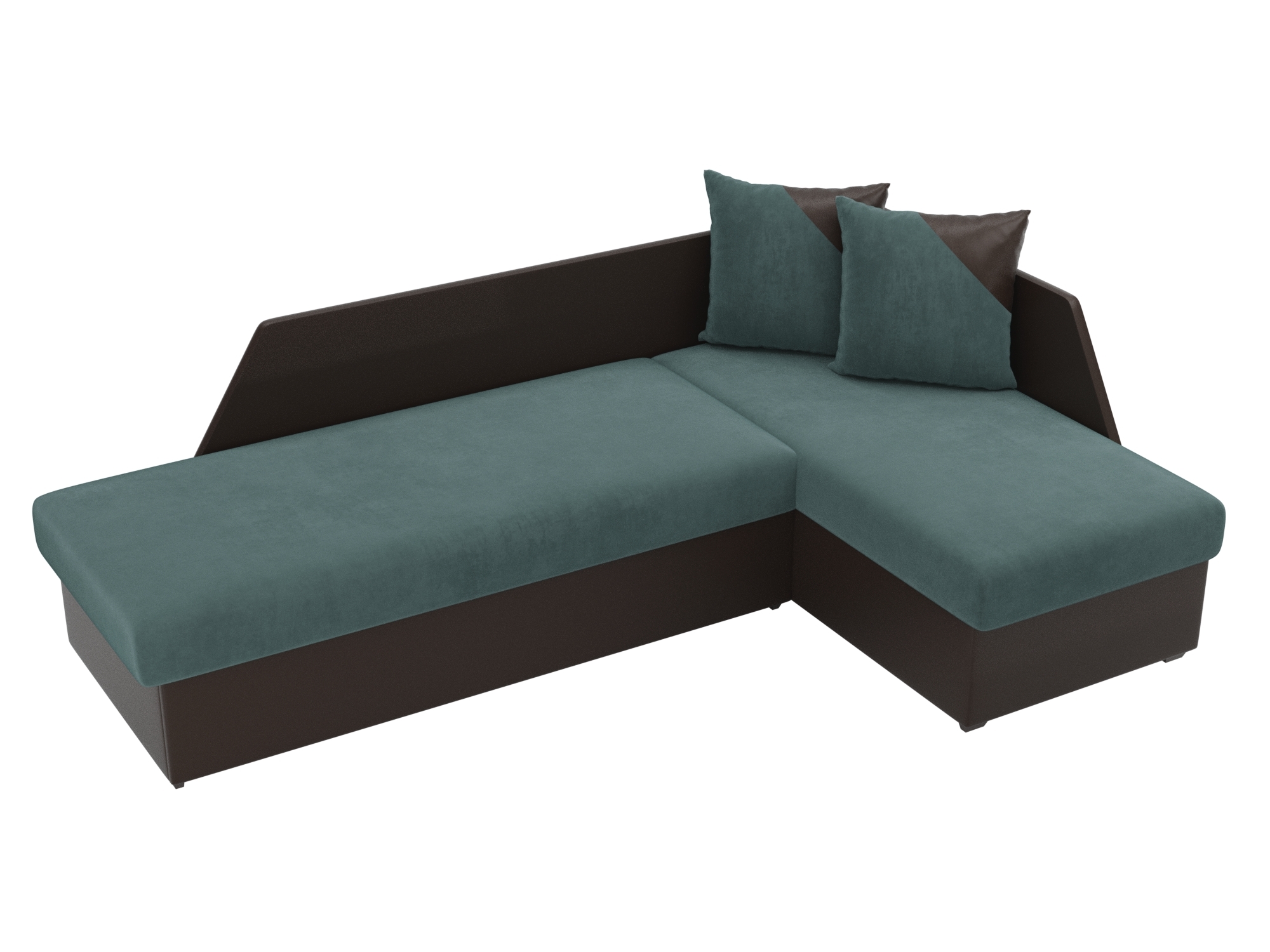 Угловой диван Андора Велюр\Экокожа Бирюзовый\Коричневый