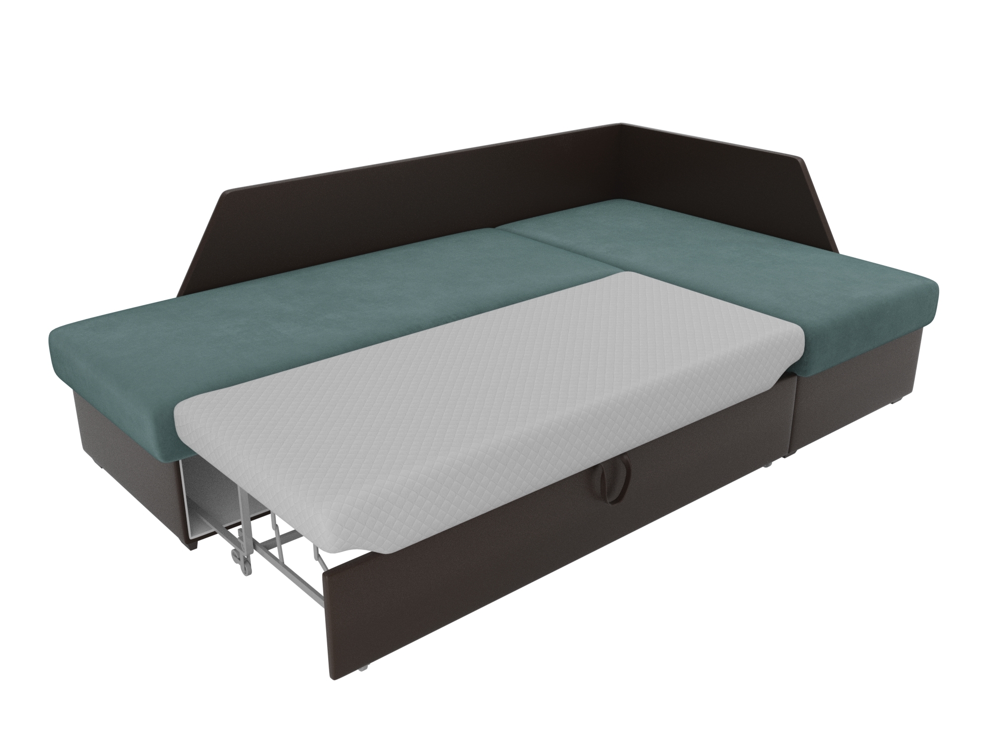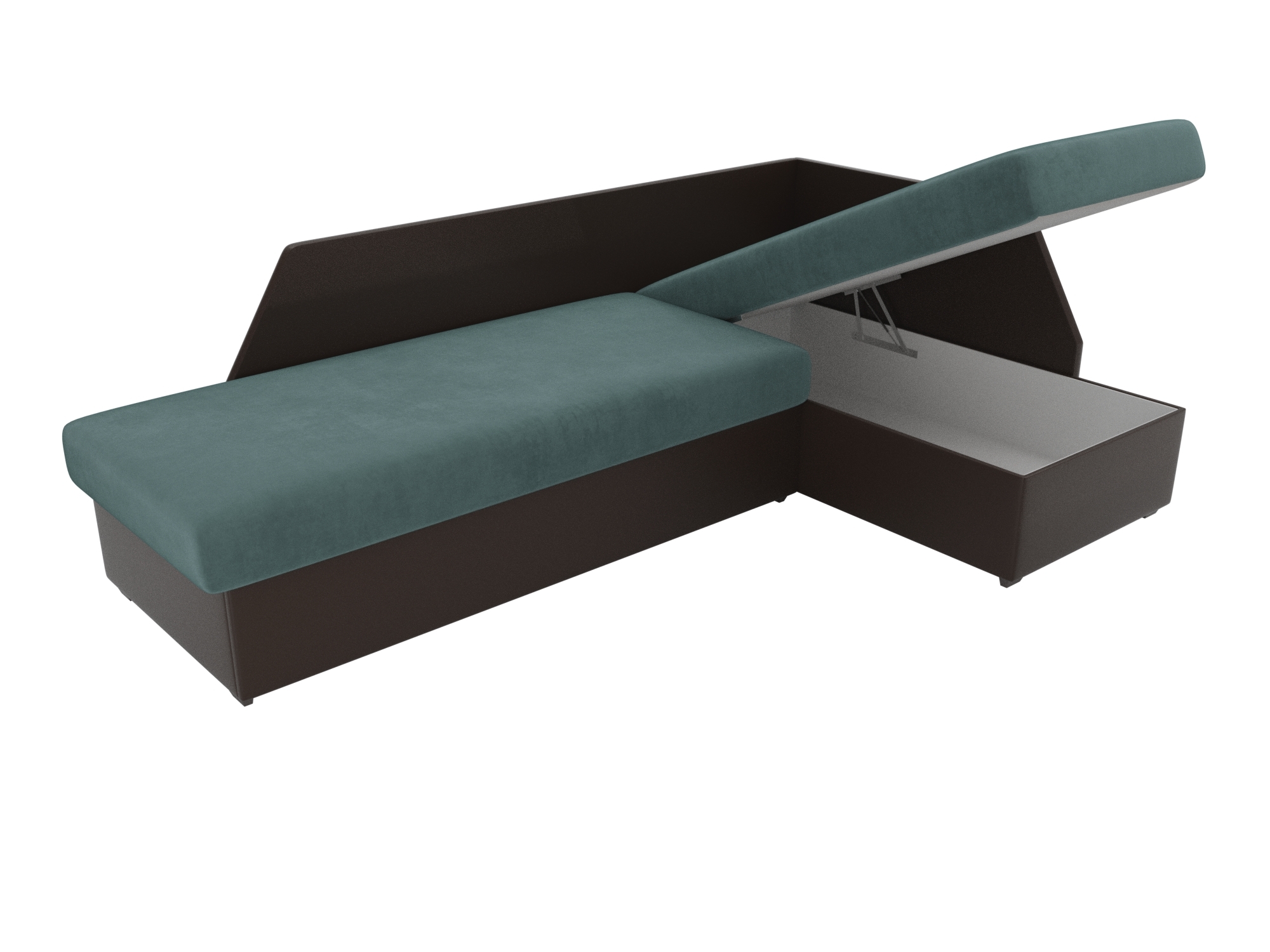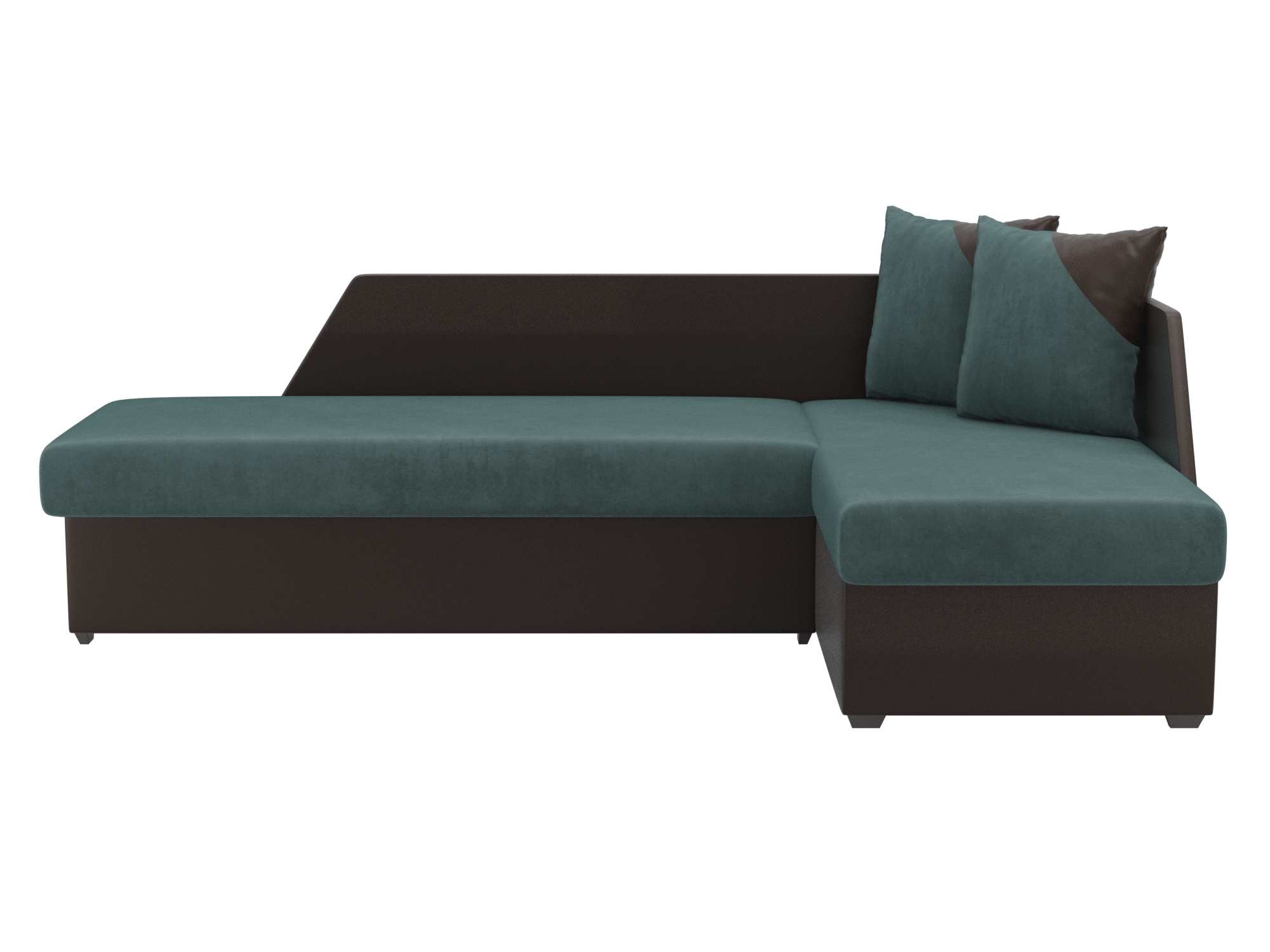 Угловой диван Андора Велюр\Экокожа Бирюзовый\Коричневый