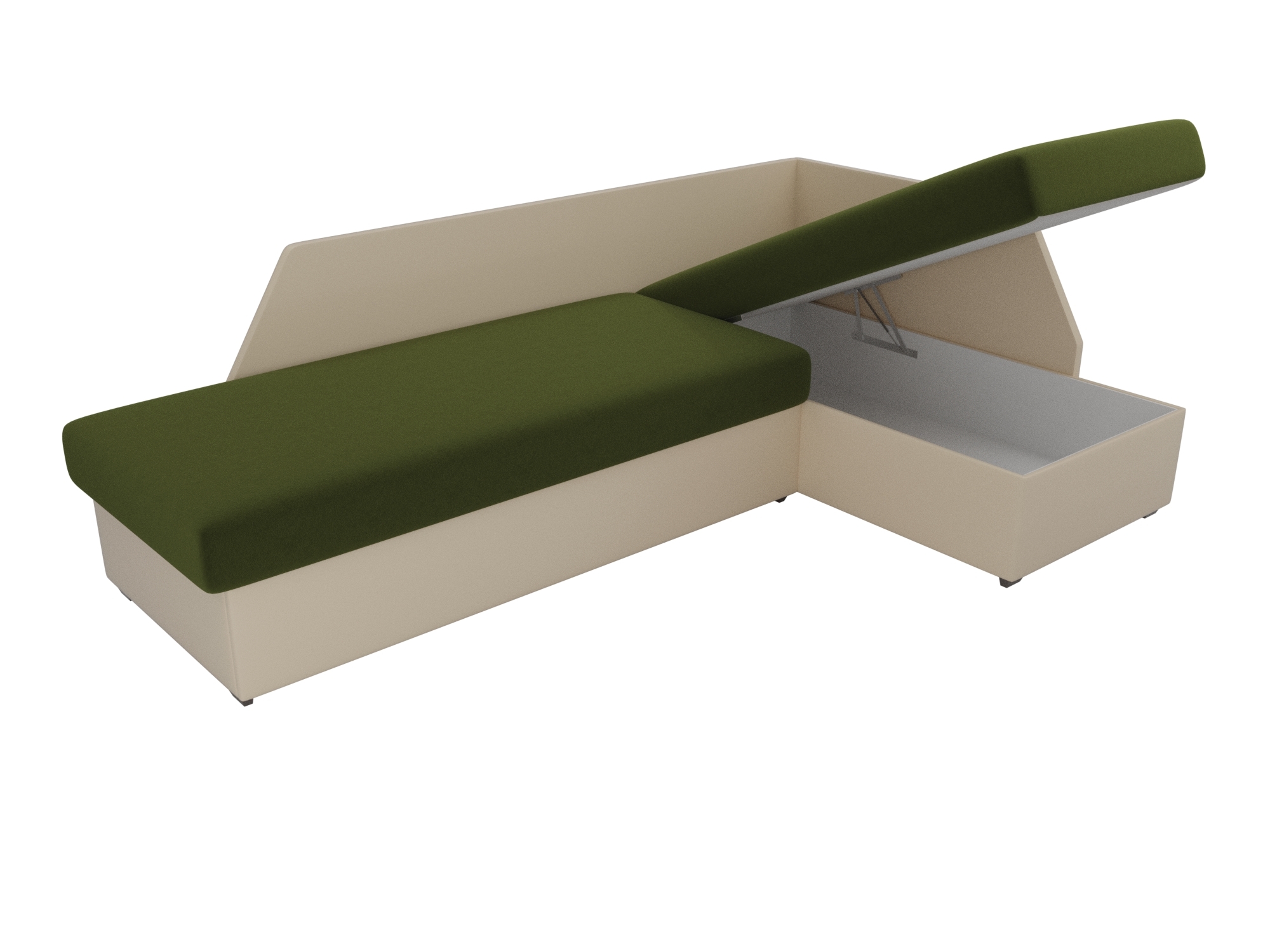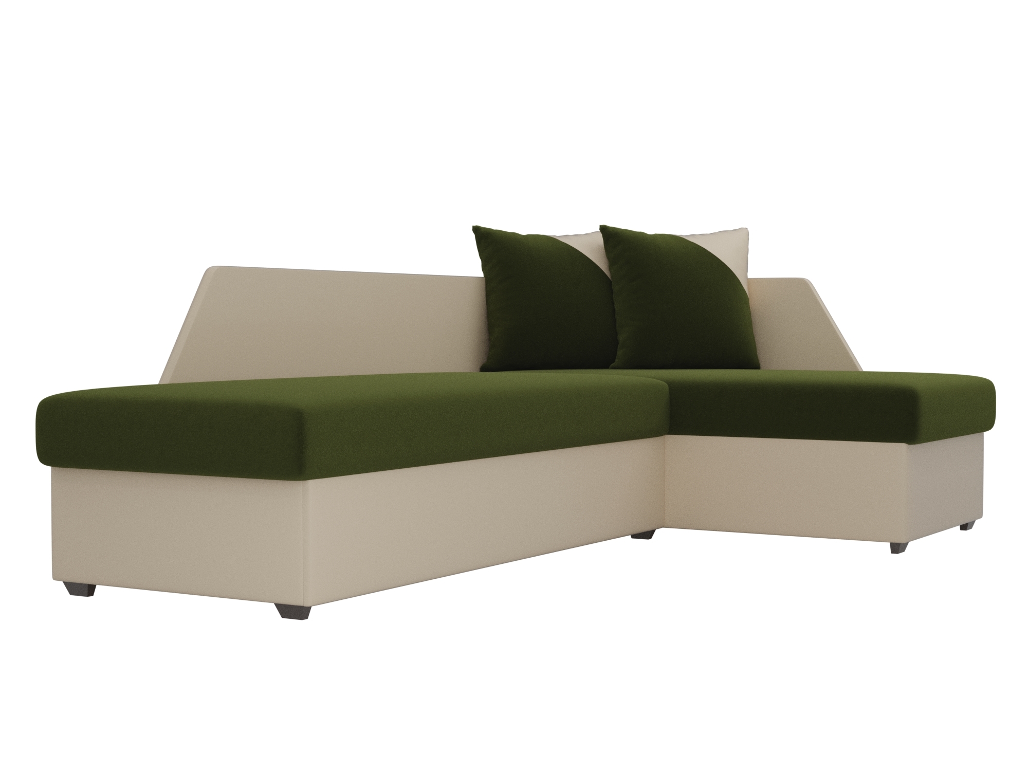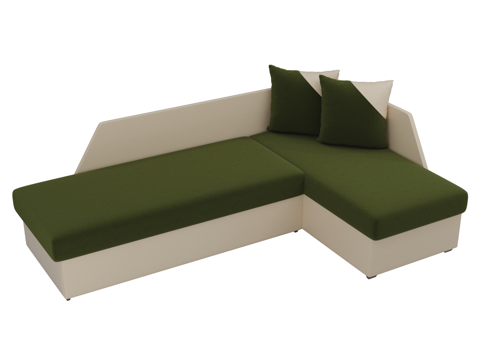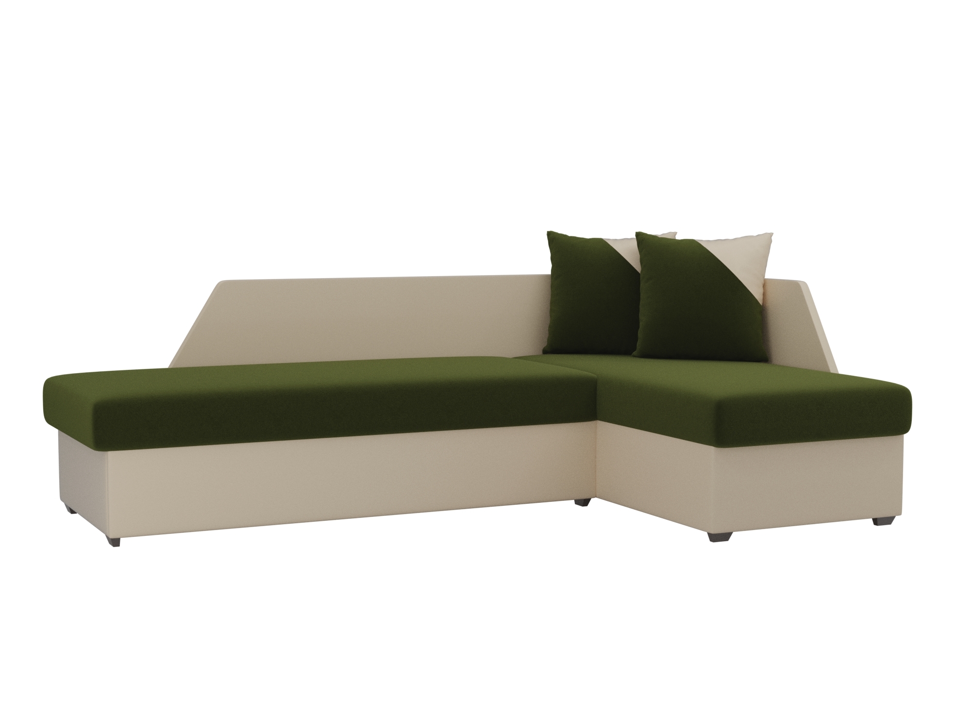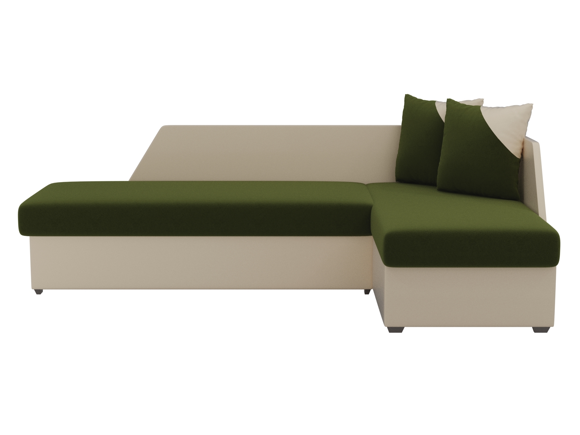 Угловой диван Андора Микровельвет\Экокожа Зеленый\Бежевый