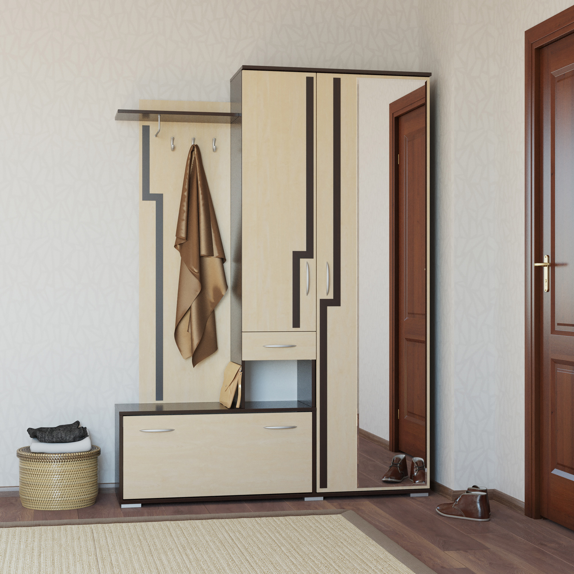 - Модель Прихожая Калипсо правая2-31М3вн.берТ венге/клён(берёза)(вяз светлый)
