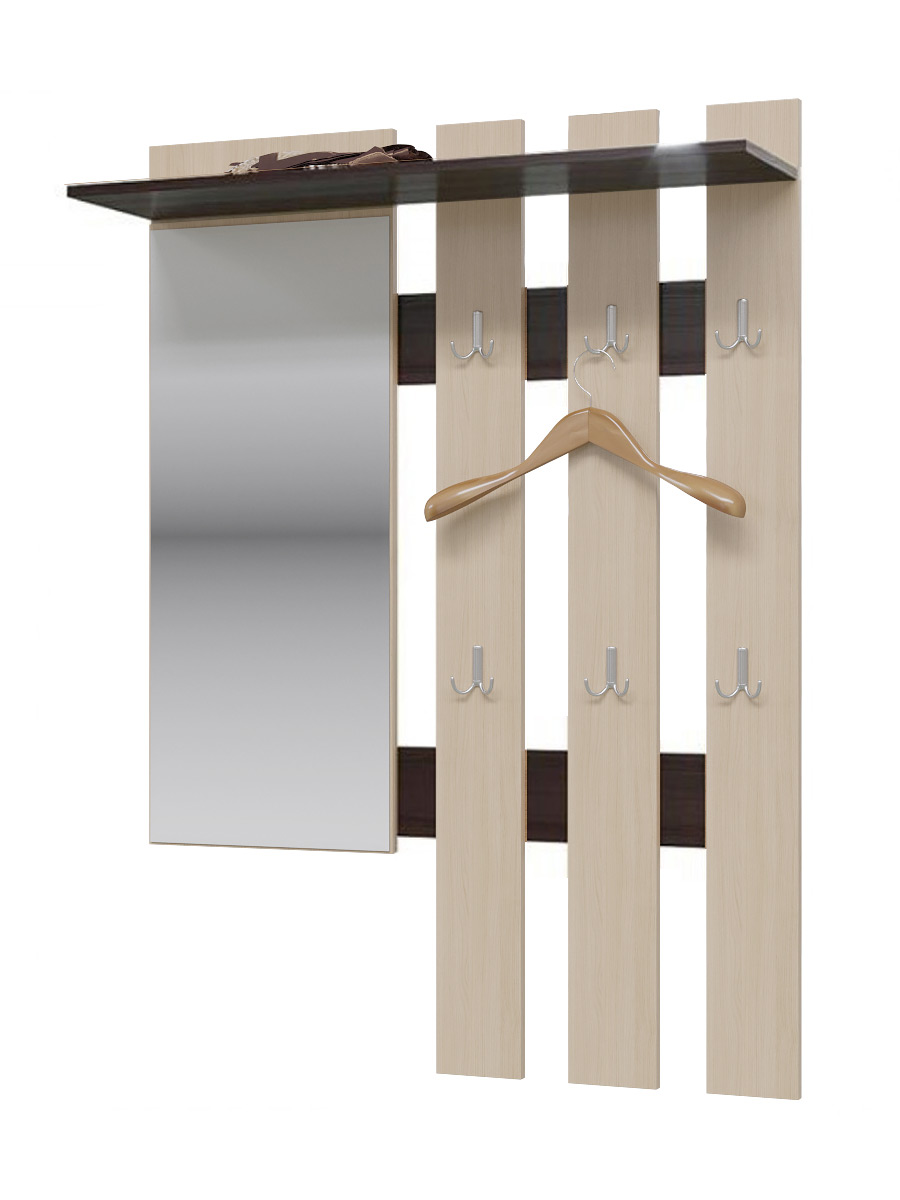 - Модель Вешалка с зеркалом Лира ГК 2-3814вн.берТ венге/берёза(вяз светлый)