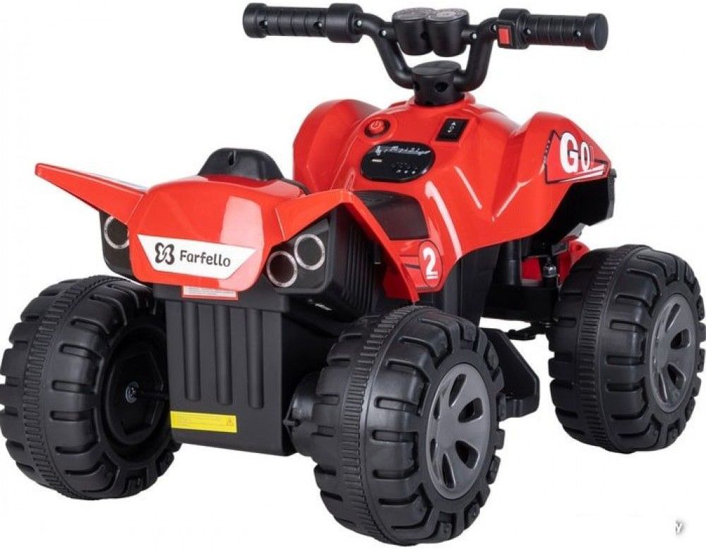 Детский электрический квадроцикл, для детей от 2 лет, максимальная нагрузка 35 кг, задняя передача, емкость аккумулятора 7 Ач, время автономной работы 120 ч, максимальная скорость 4 км/ч, вес 4.4 кг.