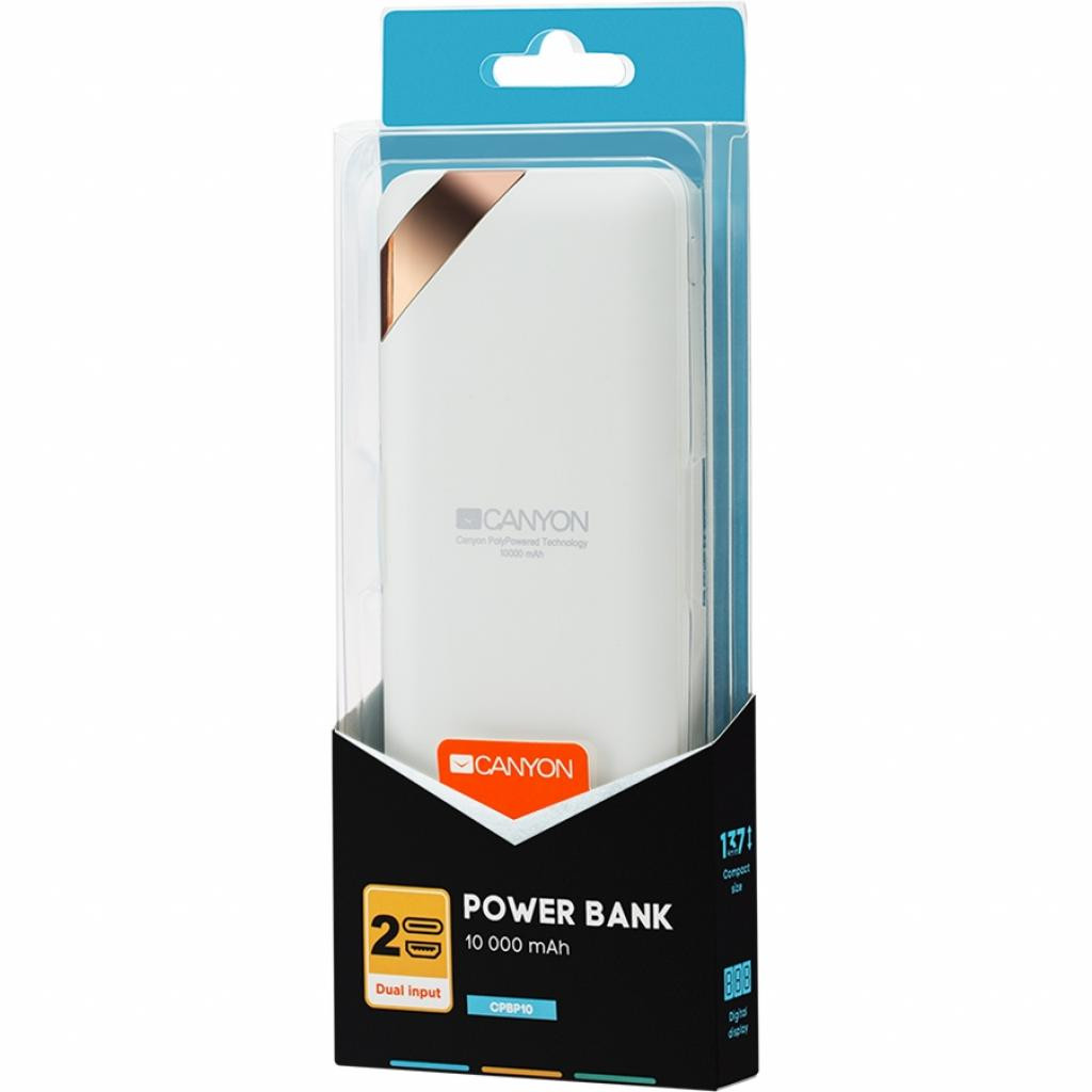 Батарея універсальна Canyon PB-102 10000mAh, Input 5V/2A, Output 5V/2.1A(Max), White (CNE-CPBP10W)