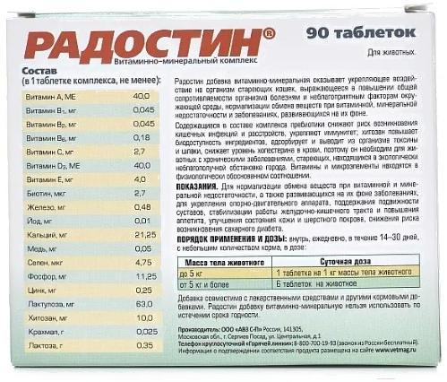 Витамины для животных Агроветзащита Радостин кошек старше 8 лет / AB675