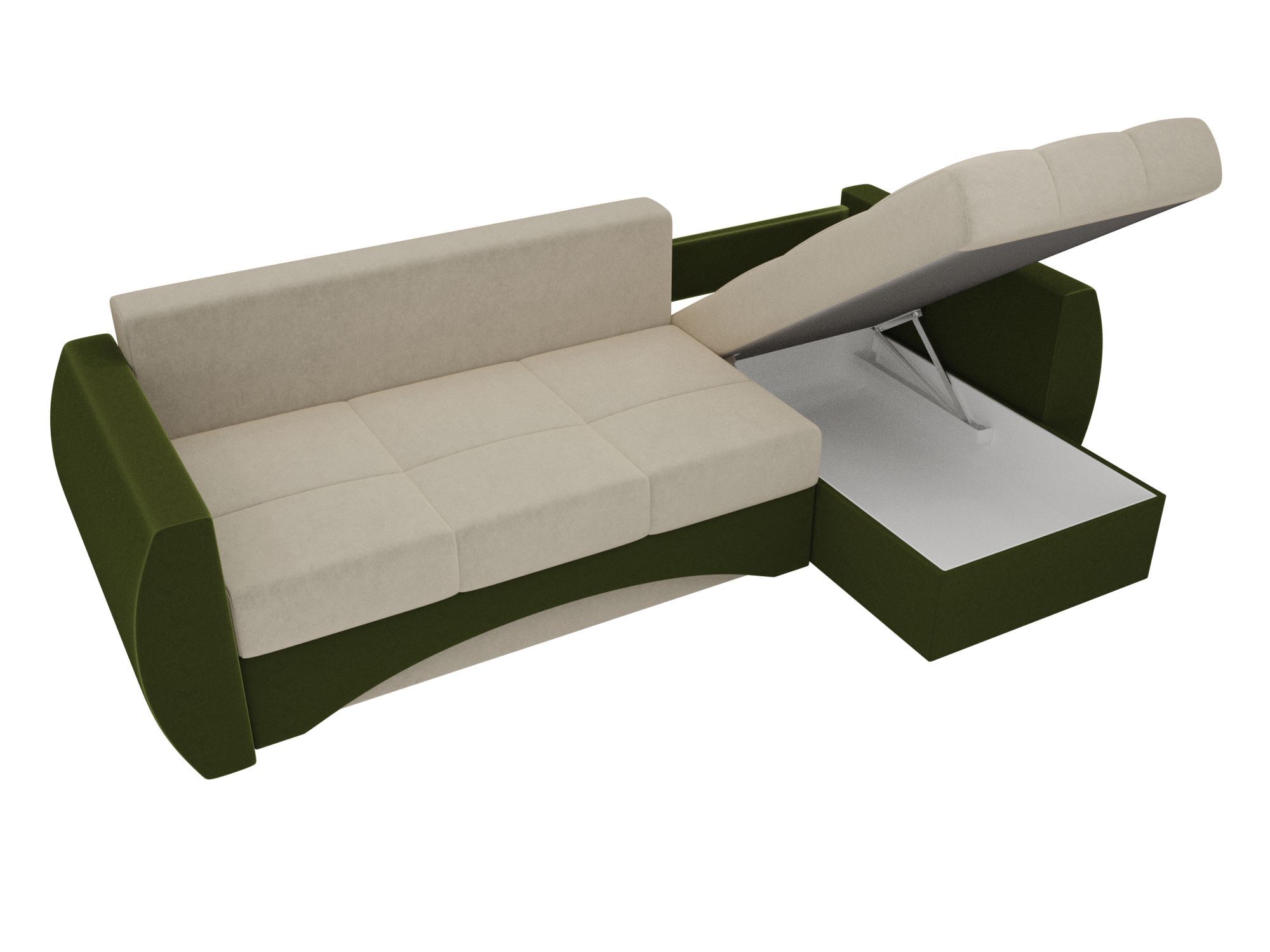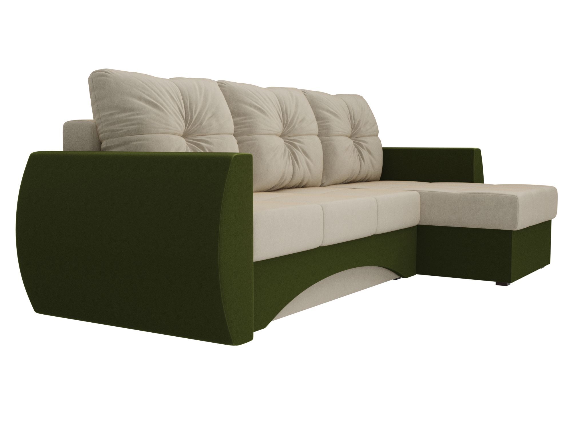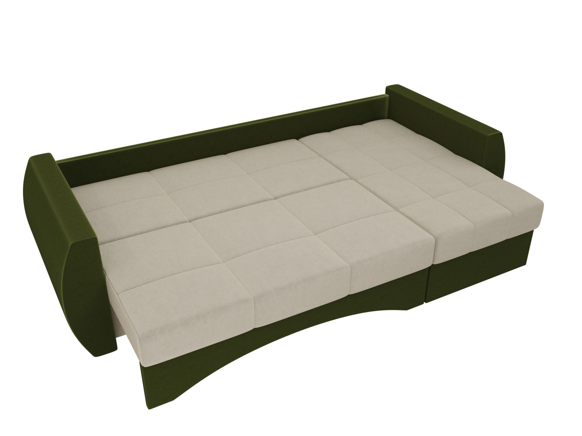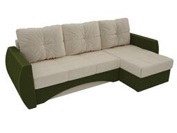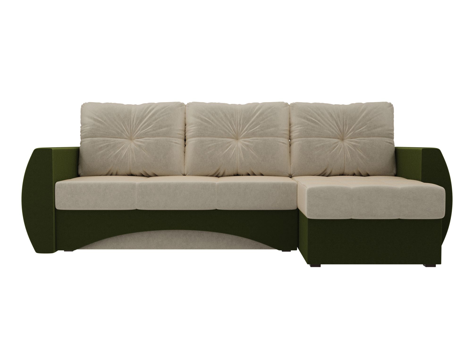 Угловой диван Сатурн Микровельвет бежевый\зеленый
