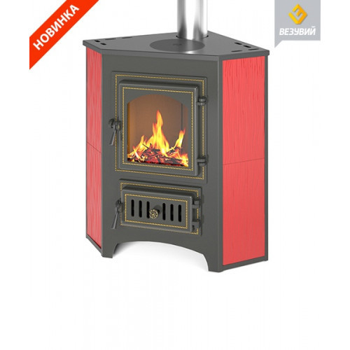 Печь-Камин ВЕЗУВИЙ ПК-01 (220) с конфоркой угловой красный