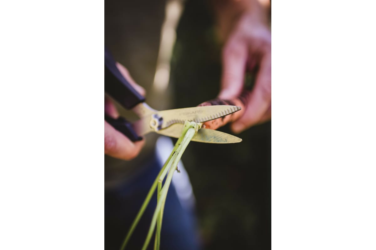 Ножницы для овощей Fiskars Solid SP240 1063327 подойдут для срезания стеблей цветов, трав, фруктов и овощей. Зубчатого лезвие обеспечивает здоровые срезы.