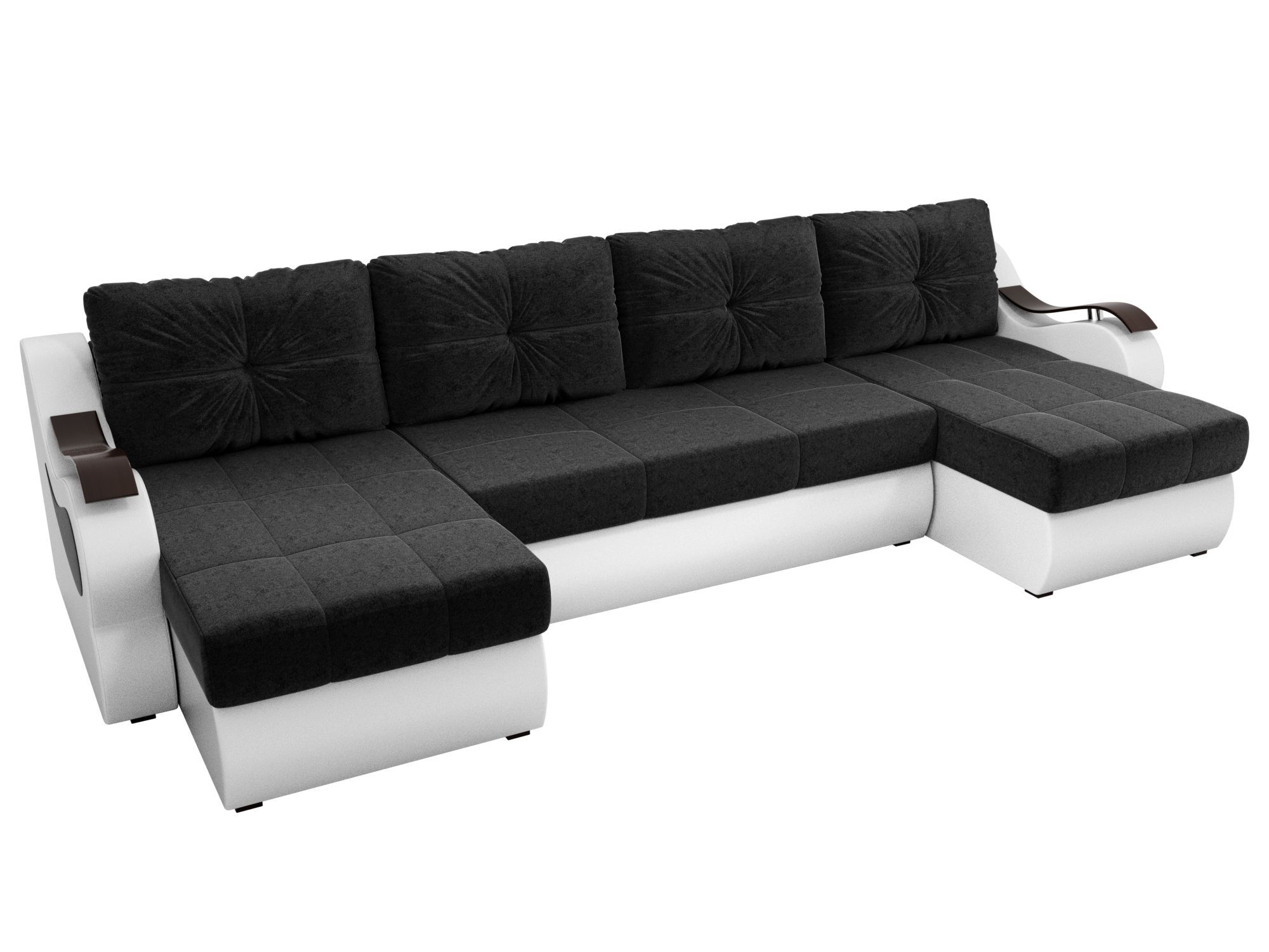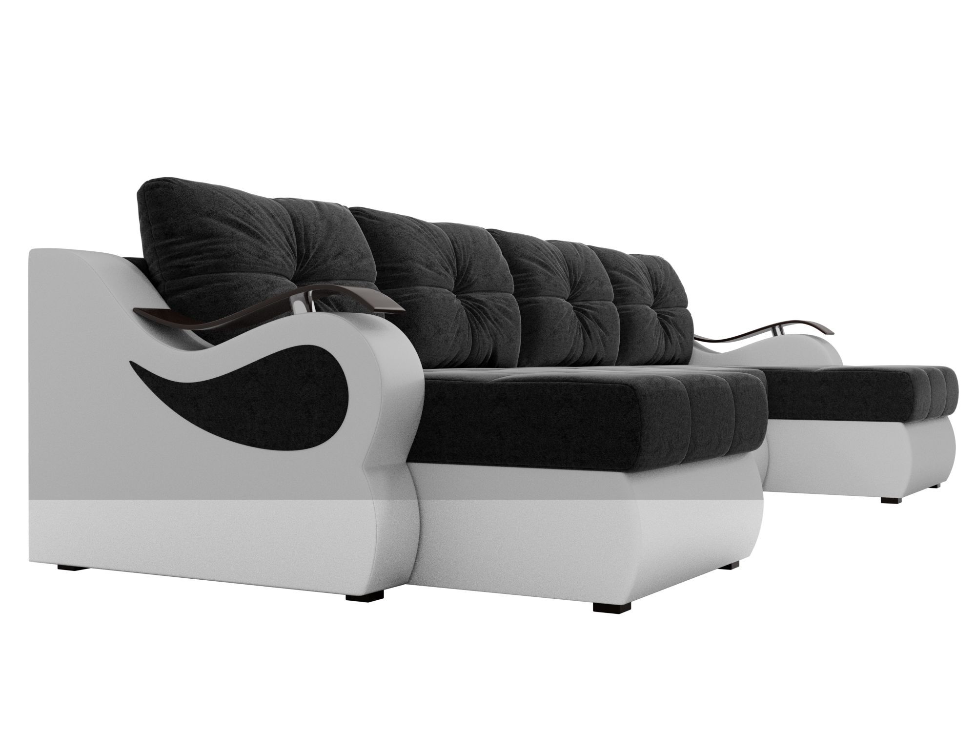 П-образный диван Меркурий Микровельвет\Экокожа Черный\Белый