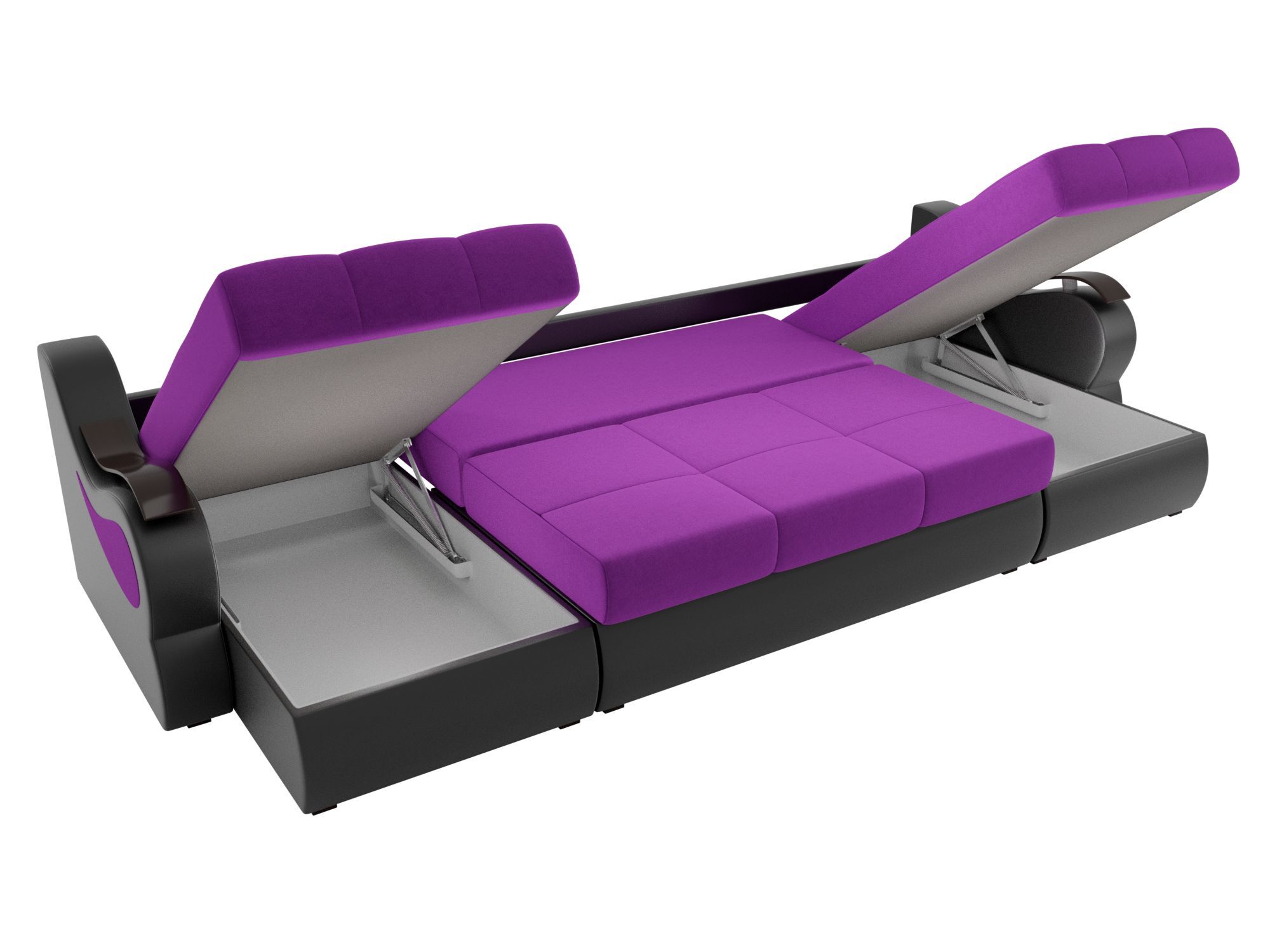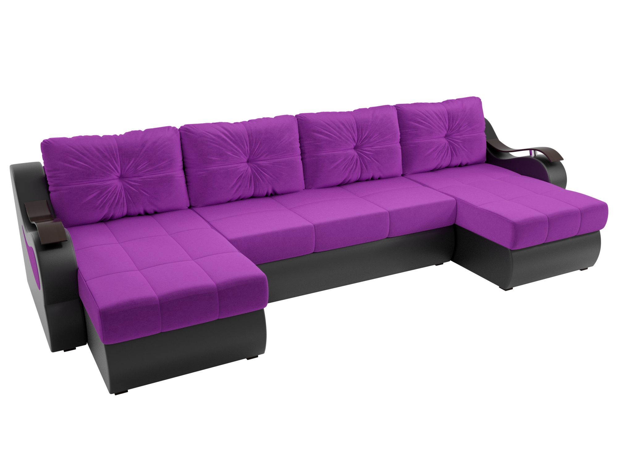П-образный диван Меркурий Микровельвет\Экокожа Фиолетовый\Черный