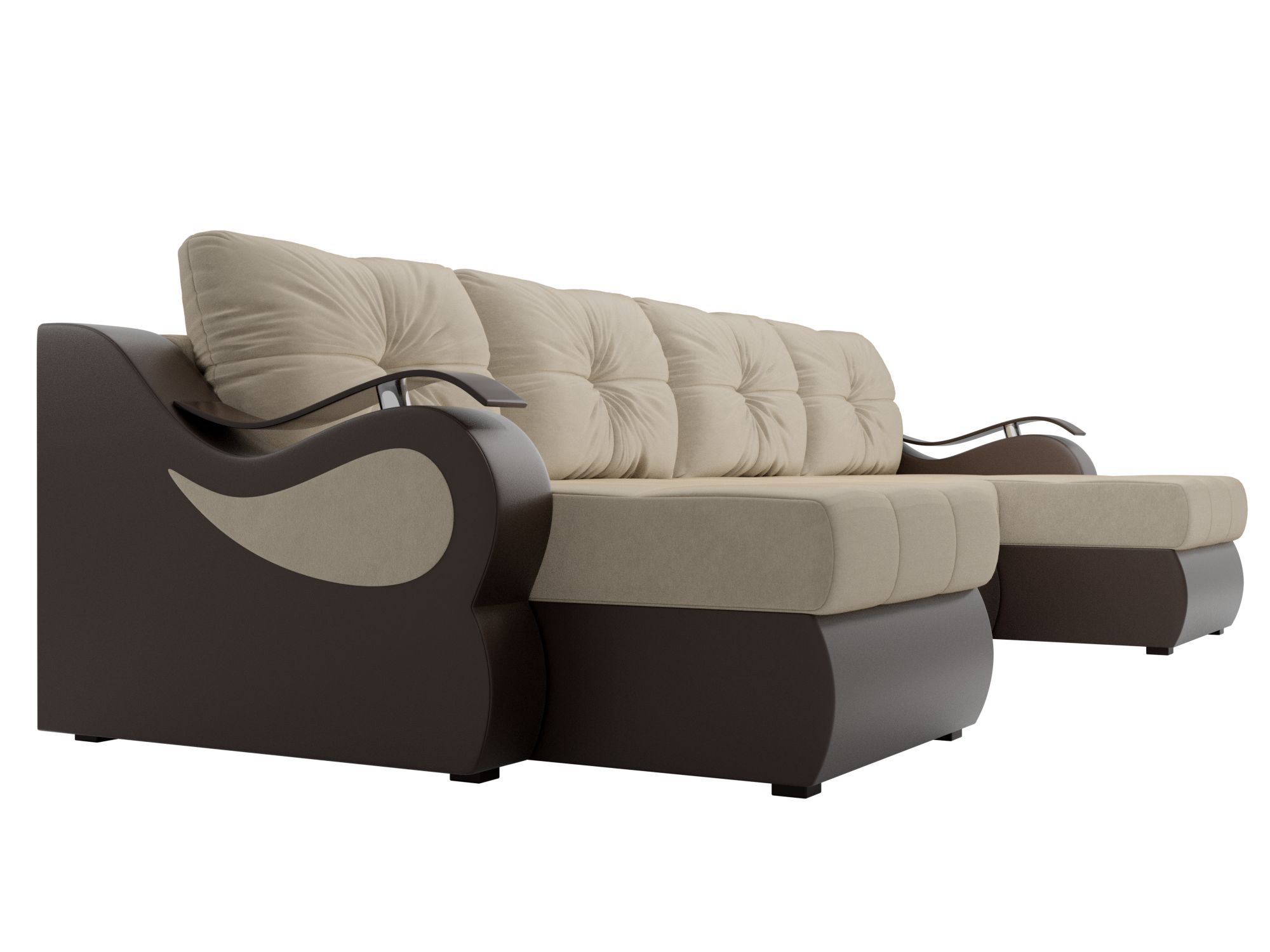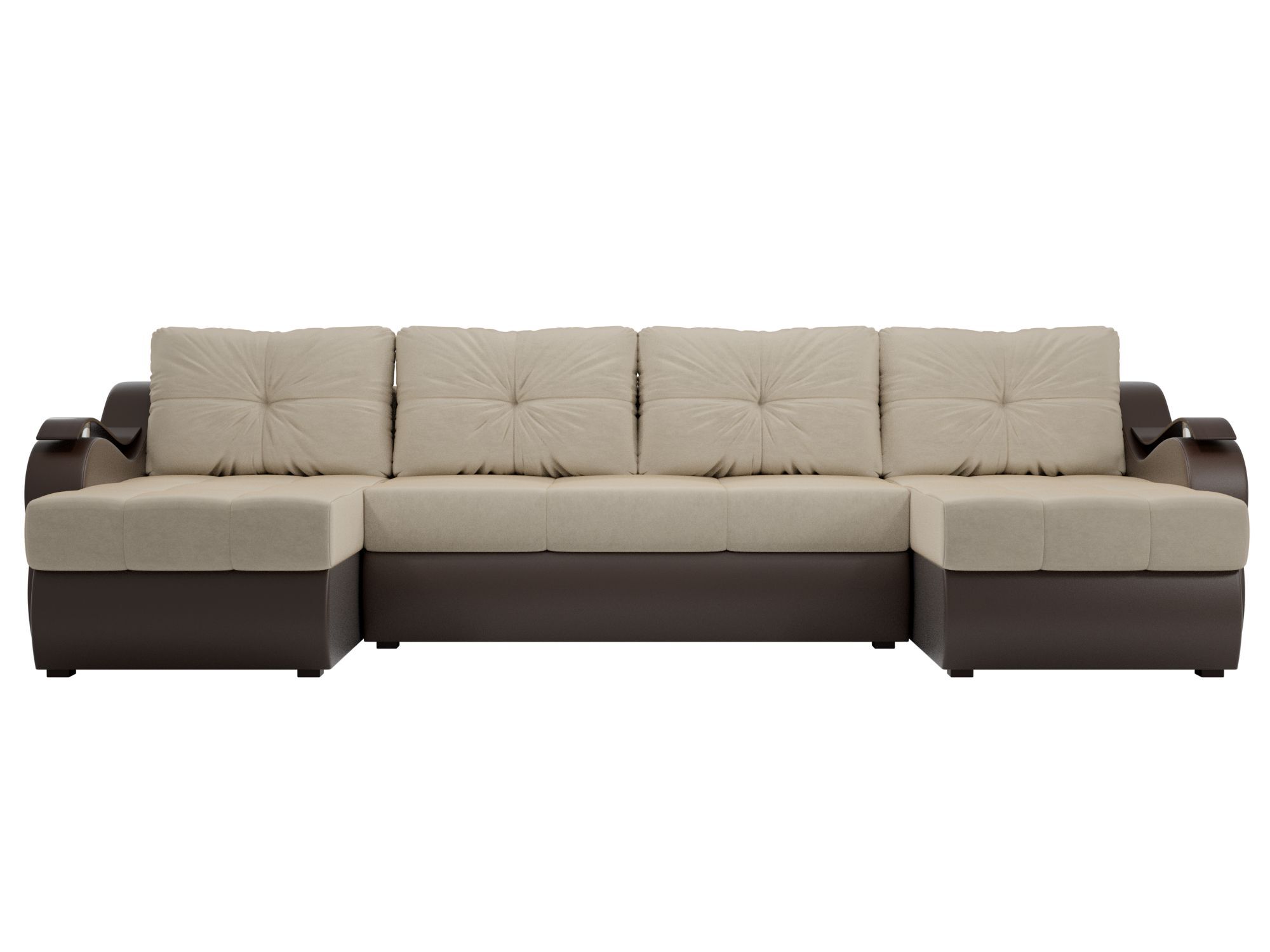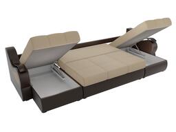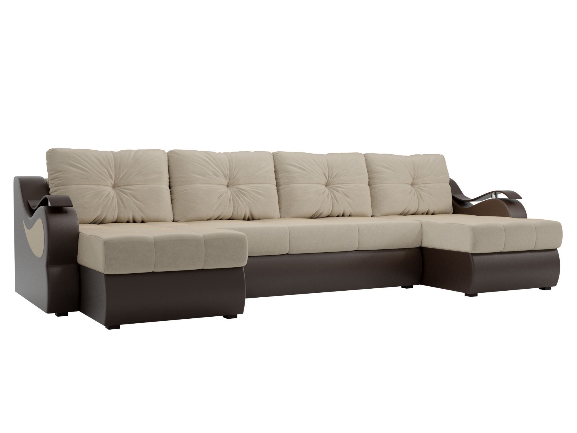 П-образный диван Меркурий Микровельвет\Экокожа бежевый\коричневый